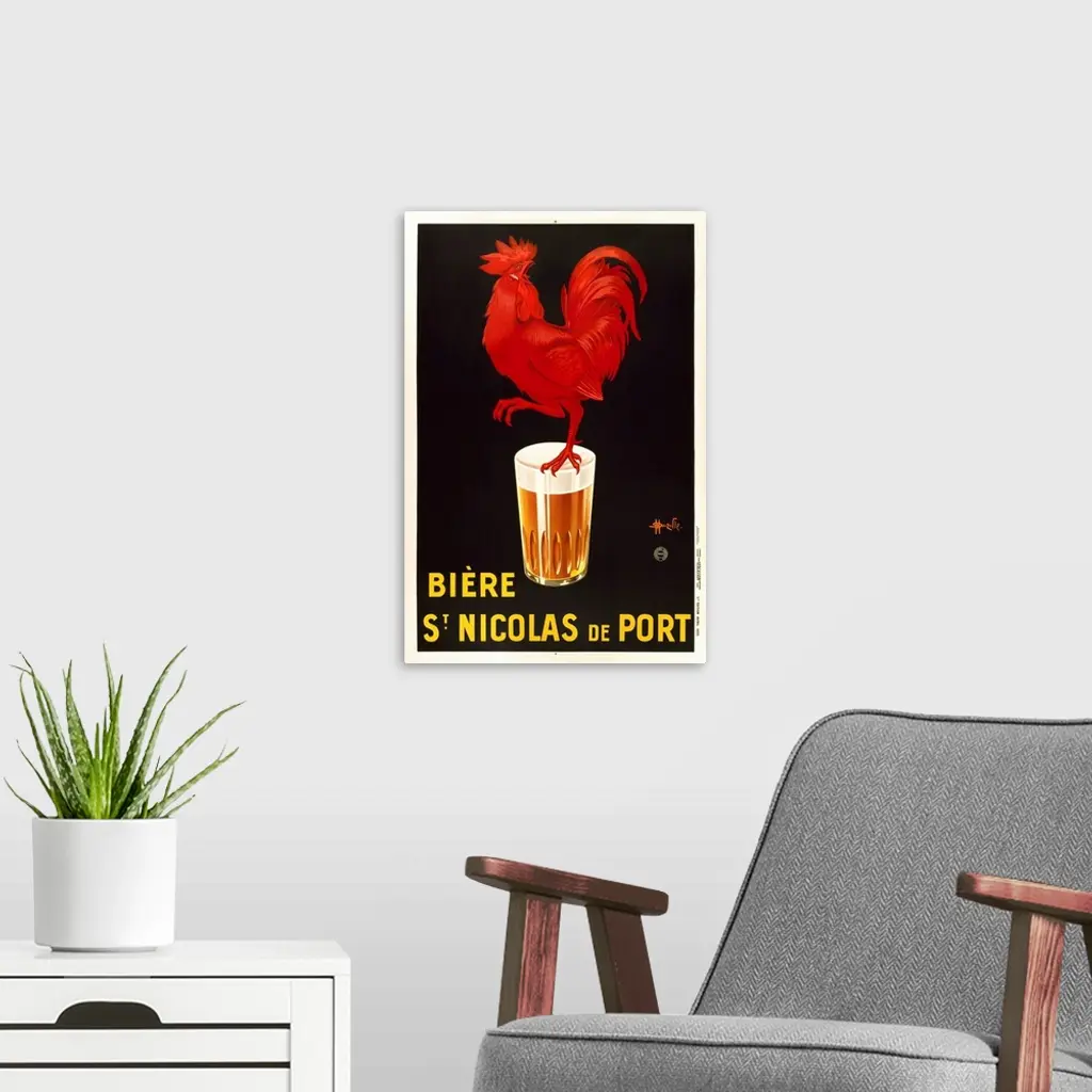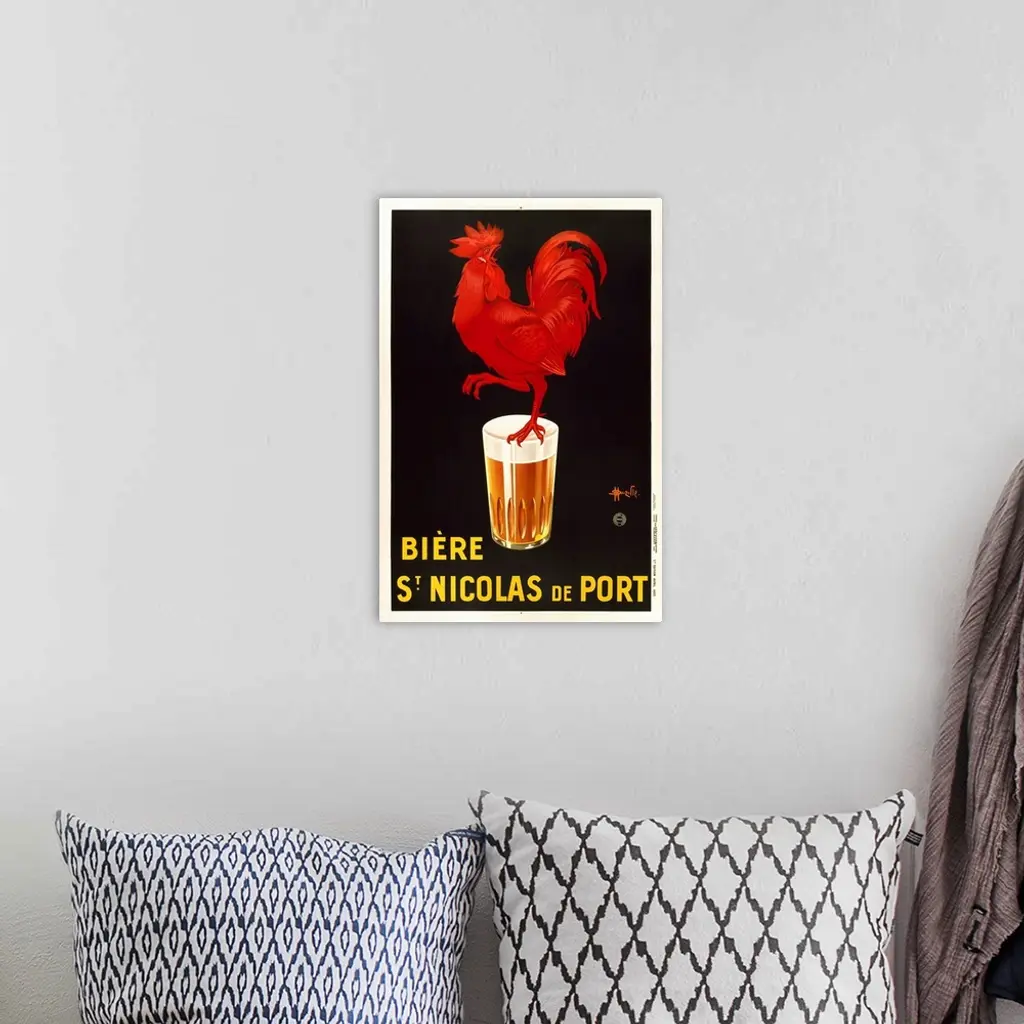 VINTAGE POSTERbeer glass and roosterBIERE S'NICOLAS DE PORTman cave