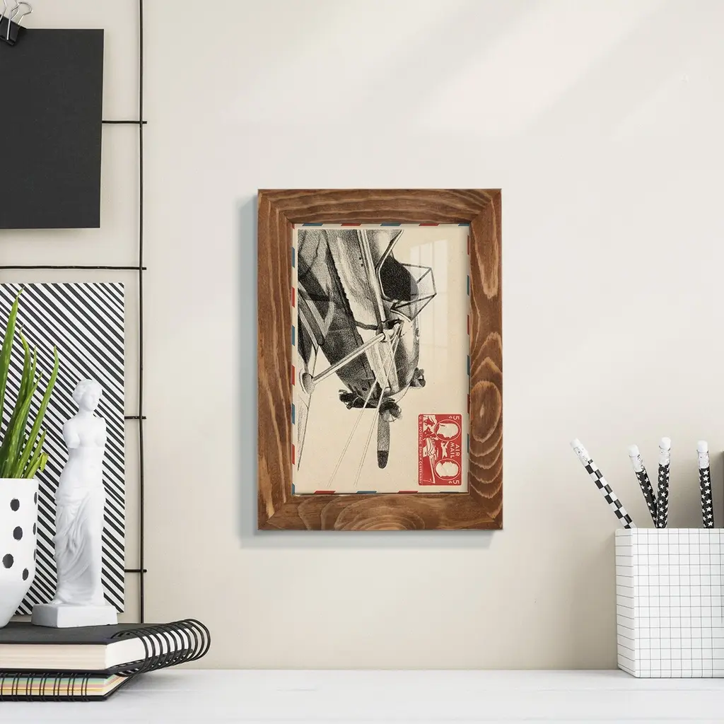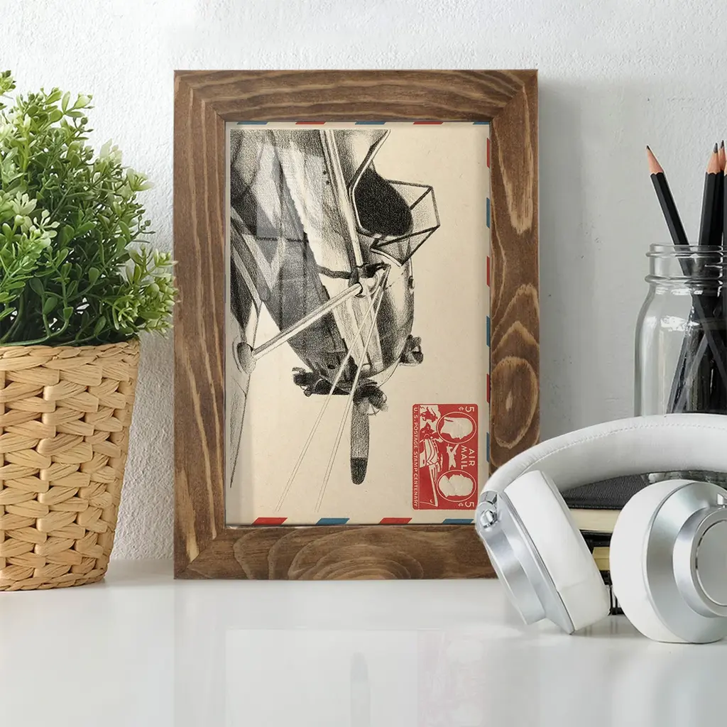 Vintage Airmail I -EZ SWITCH Framed Print w/glass-Cherry Red A delightful, framed print. Featuring a solid wood frame with real wood glass. This premium print is giclee quality. In addition, every frame features a removable back and table top stand. This allows you to change your art in the future or to just stand the art on a table for a new look. We are sure you'll enjoy our new series of EZ SWITCH Framed Art. Solid Wood Frame Real Glass Removable / Replaceable Art Built in Tabletop Stand Sizes range from 4x6 up to 12x15 - buy just one or pair them up as sets as you see fit.