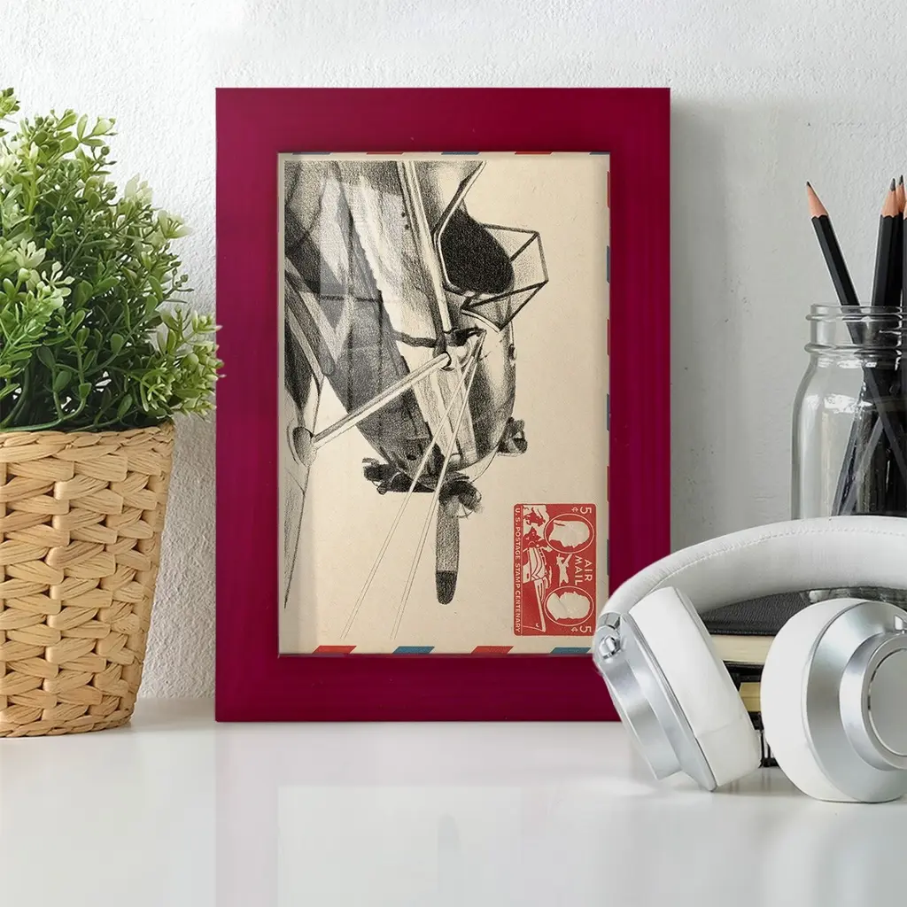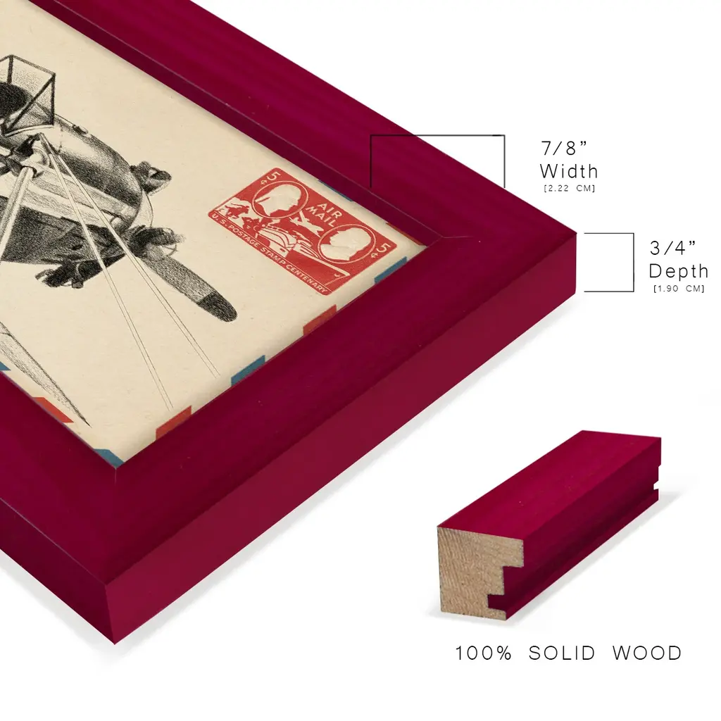 Vintage Airmail I -EZ SWITCH Framed Print w/glass-Cherry Red A delightful, framed print. Featuring a solid wood frame with real wood glass. This premium print is giclee quality. In addition, every frame features a removable back and table top stand. This allows you to change your art in the future or to just stand the art on a table for a new look. We are sure you'll enjoy our new series of EZ SWITCH Framed Art. Solid Wood Frame Real Glass Removable / Replaceable Art Built in Tabletop Stand Sizes range from 4x6 up to 12x15 - buy just one or pair them up as sets as you see fit.