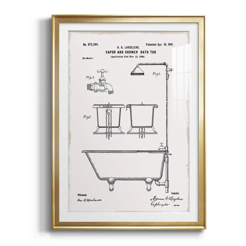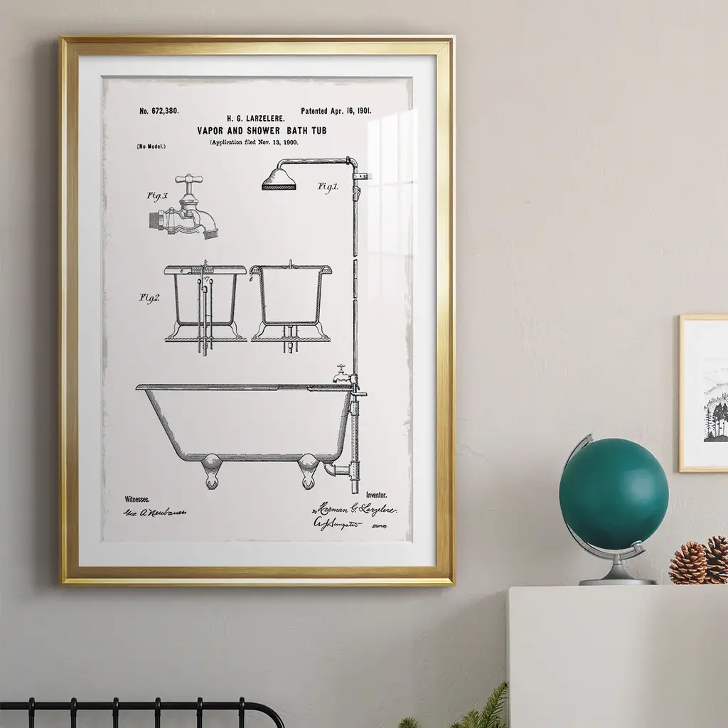 Vintage Bath II Premium Framed Print - Ready to Hang A Premium Framed Print created to last. Framed in distressed wood and available in an array of sizes and colors Featuring a beveled a solid wood stretcher bar, each piece comes ready to hand 4 SIZES AVAILABLE 30.5''X42.5'' - Overall Size 26.5'X36.5'' - Overall Size 22.5''x30.5'' - Overall Size 18.5''x24.5'' - Overall Size Each piece is made to order. Each piece comes with hanging hardware. Made in the USA Ready to Hang Giclee Paper Print Acrylic Glass Beveled Matt Board