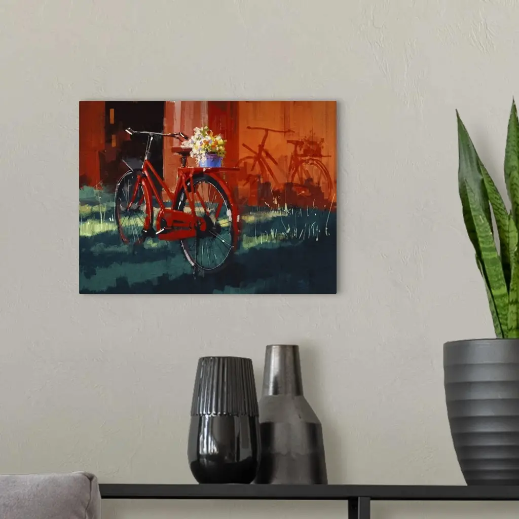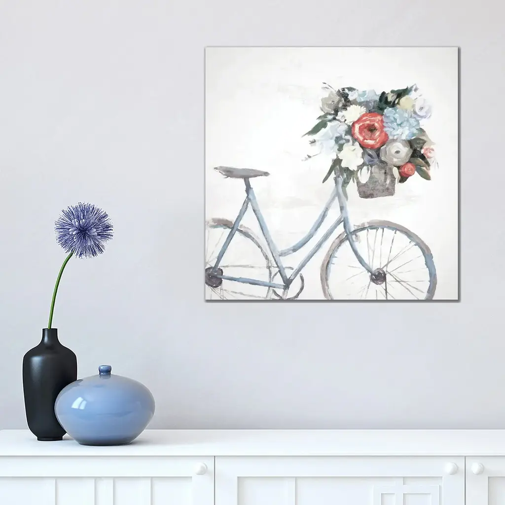 Originally a painting of vintage bicycle with bucket full of flowers.