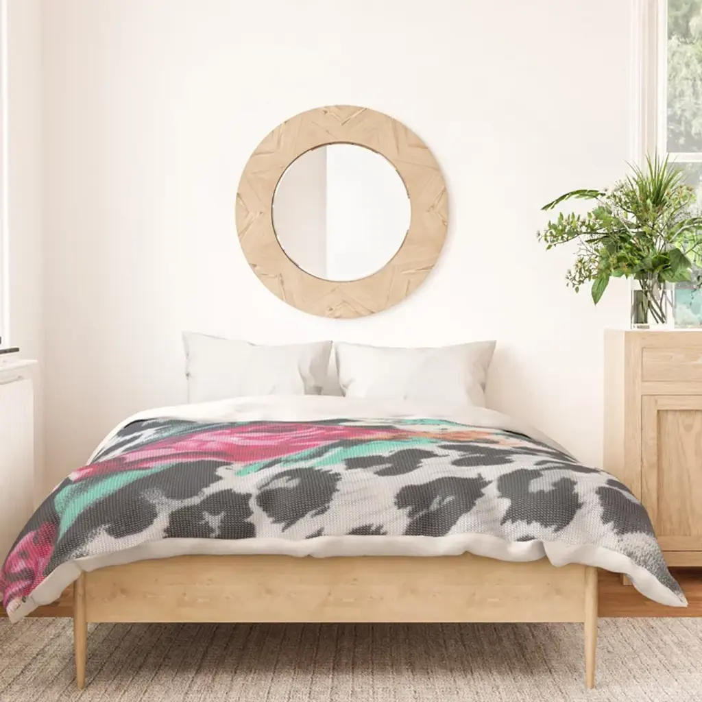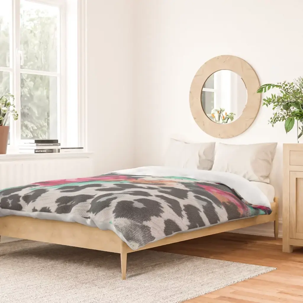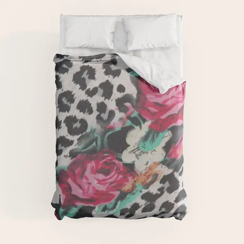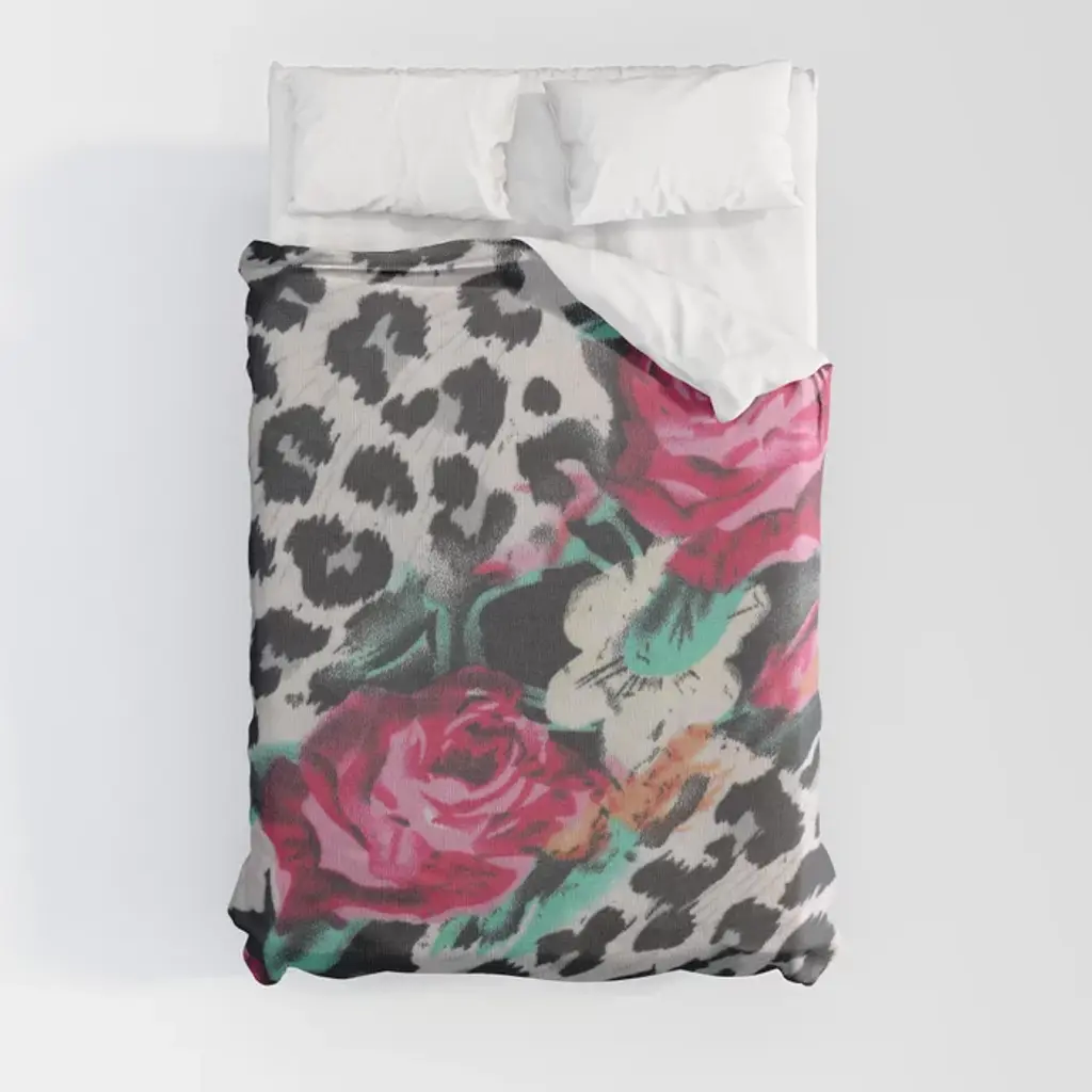 Vintage Black White Pink Floral Cheetah Animal Print Duvet Cover