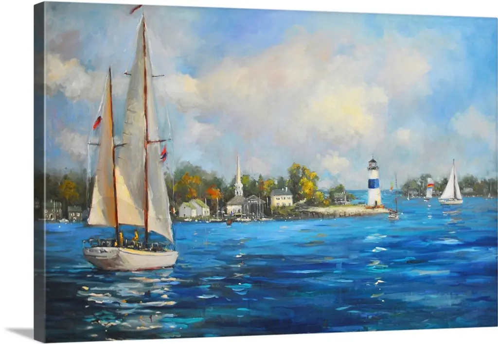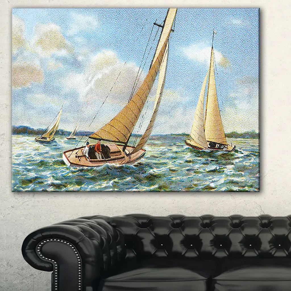 The Vintage Boats Sailing canvas art print is sure to make an impression on anyone who sees it. This artwork is gallery wrapped around a 1-inch solid wood frame and arrives carefully packaged and entirely ready to hang on the wall. Design Art only uses the highest resolution and pigments to ensure a crisp colorful print that is never faded or pixelated. This artwork is sure to be a conversation starter in any home or office.