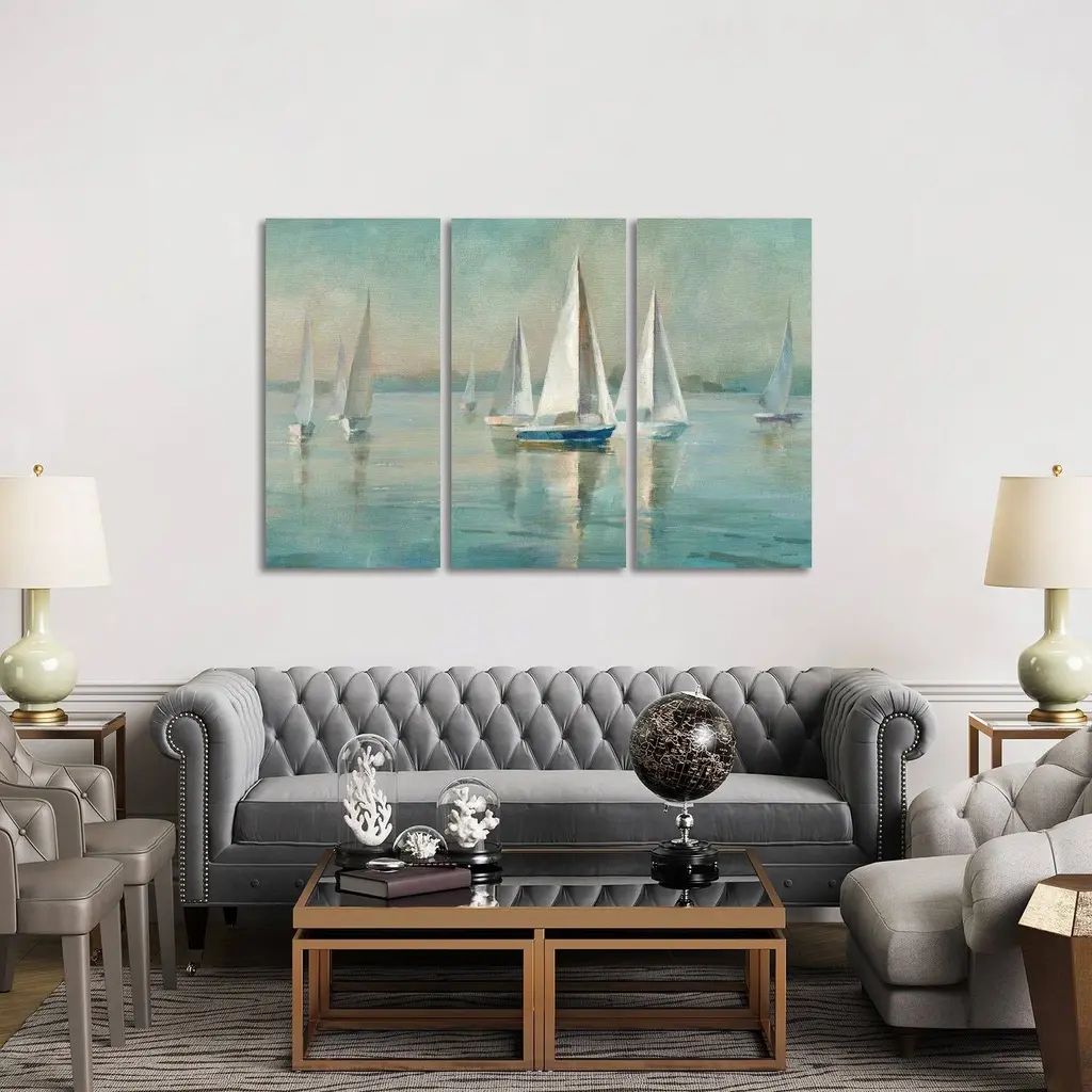 "Vintage Boats Sailing" Canvas Print, 5 Panels, 60"x32"