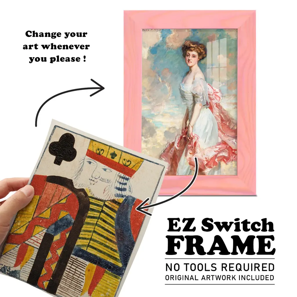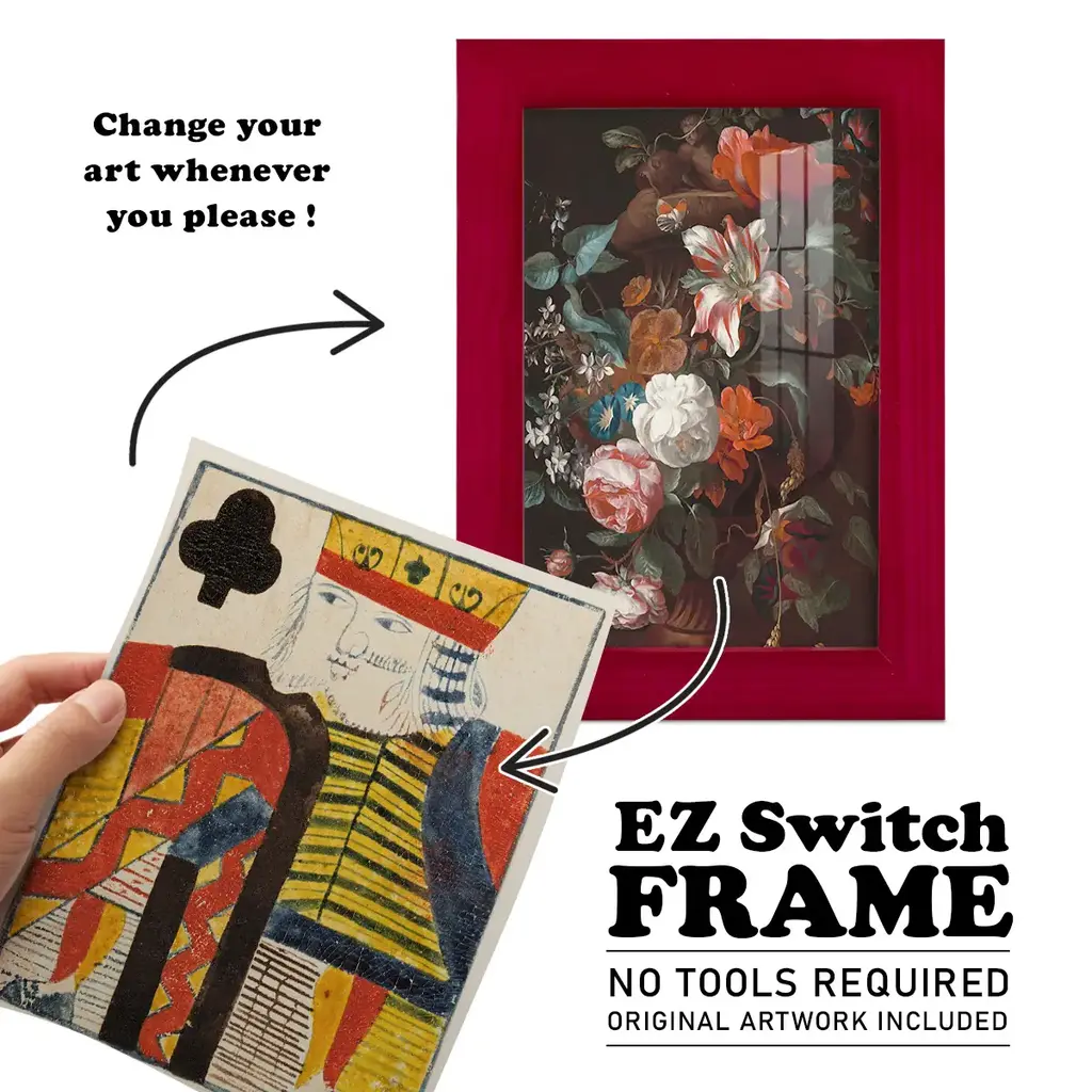 Vintage Cards V -EZ SWITCH Framed Print w/glass-Cherry Red A delightful, framed print. Featuring a solid wood frame with real wood glass. This premium print is giclee quality. In addition, every frame features a removable back and table top stand. This allows you to change your art in the future or to just stand the art on a table for a new look. We are sure you'll enjoy our new series of EZ SWITCH Framed Art. Solid Wood Frame Real Glass Removable / Replaceable Art Built in Tabletop Stand Sizes range from 4x6 up to 12x15 - buy just one or pair them up as sets as you see fit.