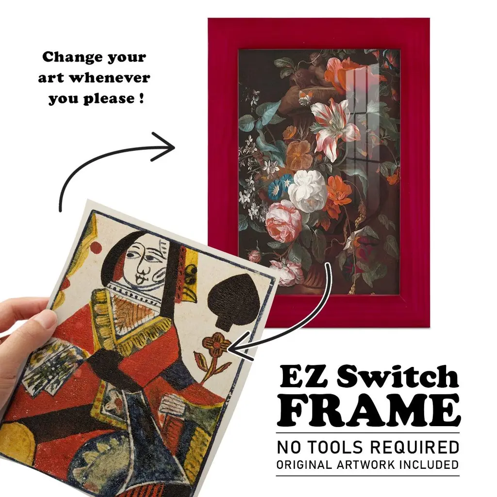 Vintage Cards VI -EZ SWITCH Framed Print w/glass-Cherry Red A delightful, framed print. Featuring a solid wood frame with real wood glass. This premium print is giclee quality. In addition, every frame features a removable back and table top stand. This allows you to change your art in the future or to just stand the art on a table for a new look. We are sure you'll enjoy our new series of EZ SWITCH Framed Art. Solid Wood Frame Real Glass Removable / Replaceable Art Built in Tabletop Stand Sizes range from 4x6 up to 12x15 - buy just one or pair them up as sets as you see fit.