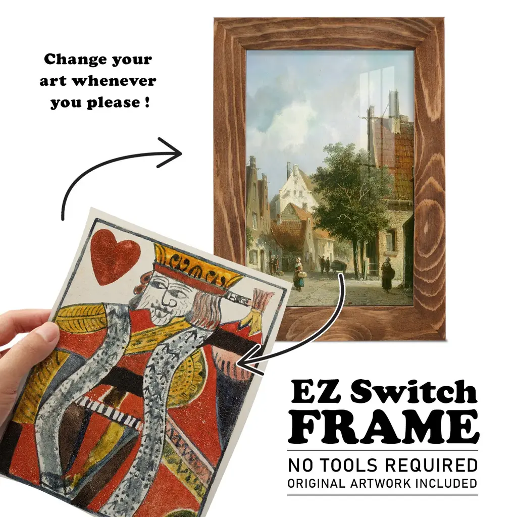 Vintage Cards VIII -EZ SWITCH Framed Print w/glass-Cherry Red A delightful, framed print. Featuring a solid wood frame with real wood glass. This premium print is giclee quality. In addition, every frame features a removable back and table top stand. This allows you to change your art in the future or to just stand the art on a table for a new look. We are sure you'll enjoy our new series of EZ SWITCH Framed Art. Solid Wood Frame Real Glass Removable / Replaceable Art Built in Tabletop Stand Sizes range from 4x6 up to 12x15 - buy just one or pair them up as sets as you see fit.