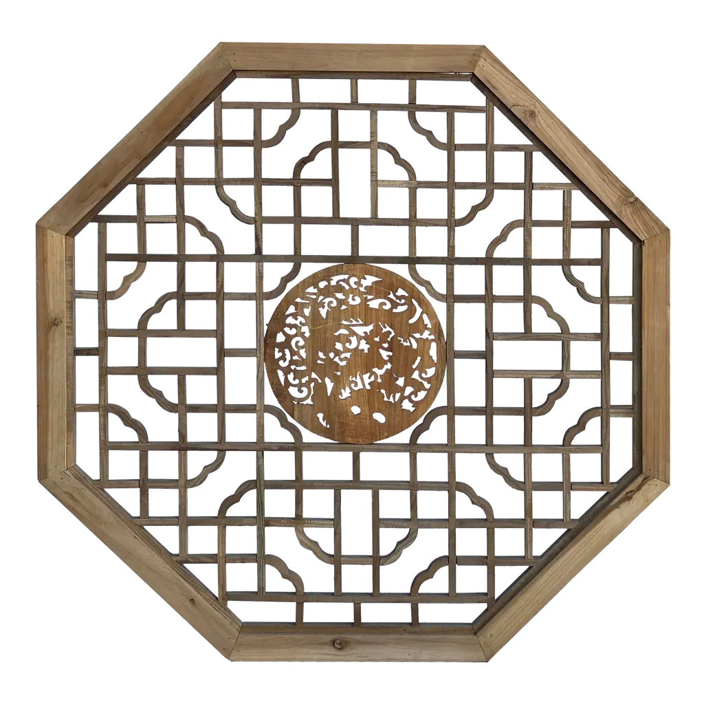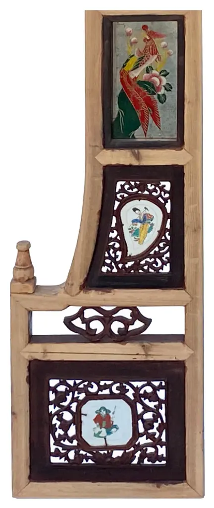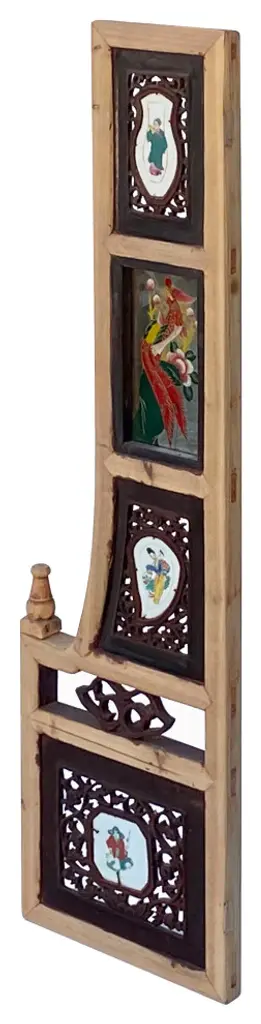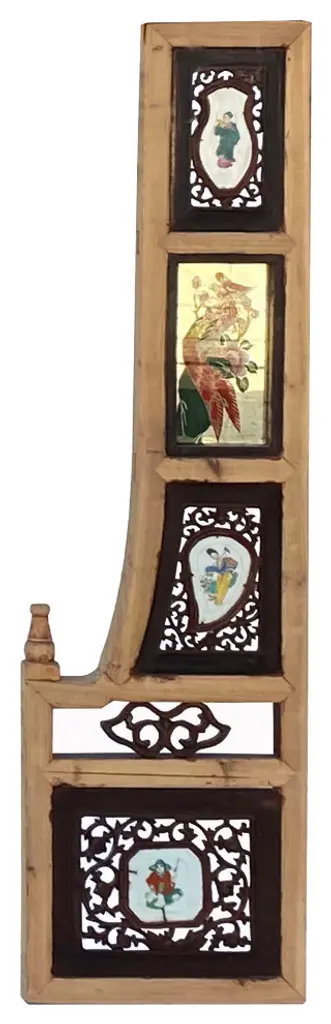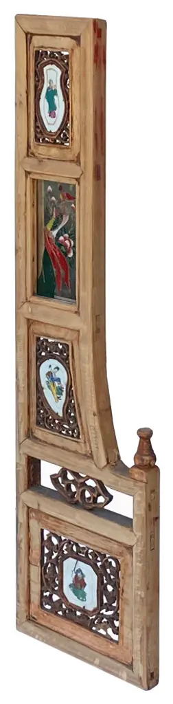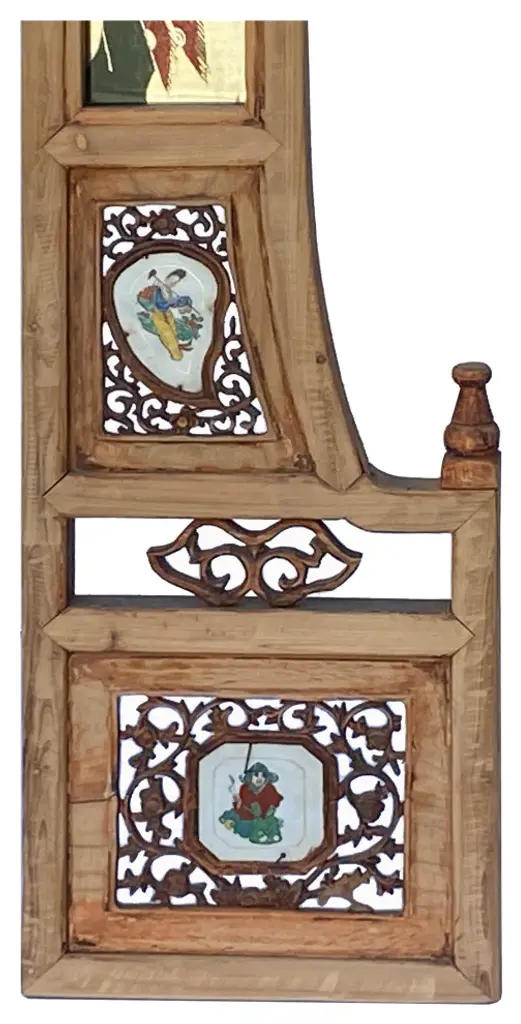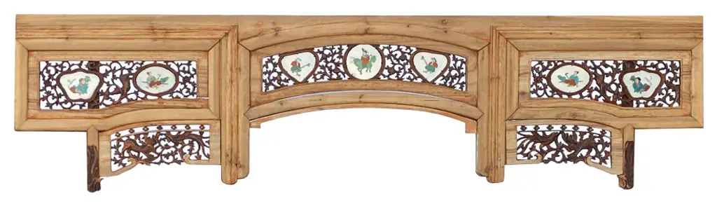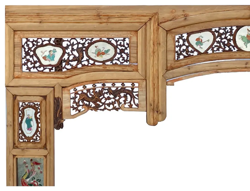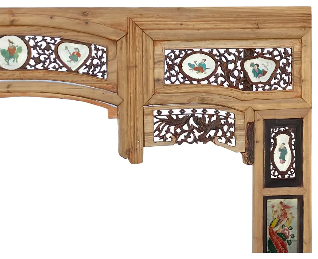 Vintage Chinese Arch Shape Carving Porcelain Graphic Wood Wall Art, Hws2254