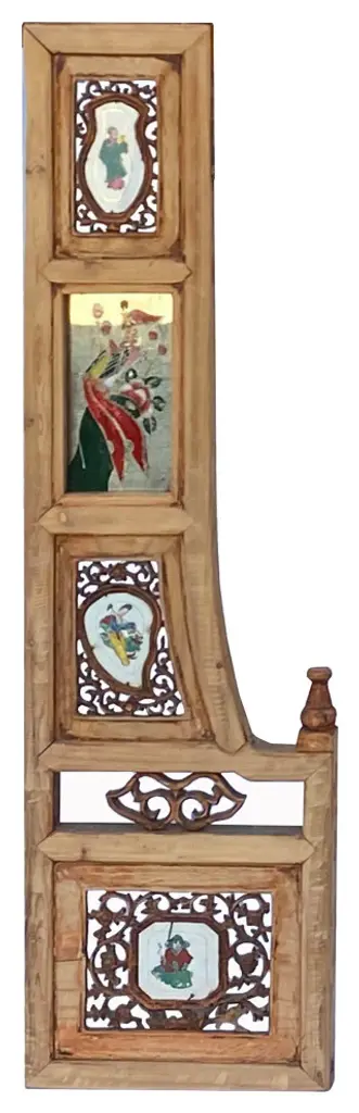 This is a vintage wood carving panel wall art in arch shape ( it was part of a bed frame ) with a dimensional carving motif and porcelain Chinese people gathering scenery inset. The original color is washed off and there are missing pieces. Can sand off the dark brown color on one side to match the other side. Dimensions: w77" x h59", center width 51"Origin: ChinaMaterial: Elm WoodCondition: Vintage finish, handmade, wood joint lines, distressed rustic, as it . Ship in three pieces in one packageUS domestic continental buyer of 48 states pays $380 shipping charge for curbside delivery. Customer from Hawaii, Alaska, US Island, Florida Keywest, and Canada pays extra shipping cost. Insurance and handling charge are already included in the shipping cost. In-store pick-up is highly welcomed if you are in San Francisco Bay Area. (No charge) White-Glove (4-8 weeks transit) service can be arranged with additional cost - needs quotation based on the destination.When your shipment is delivered, carefully inspect the outside of the packaging before the delivery personnel leave. It is important to clearly indicate if there is any visible damage to the packaging or items on the delivery paperwork. Carriers usually do not honor concealed damage claims so it is crucial to clearly indicate any visible damage to the packaging or items on the delivery paperwork.