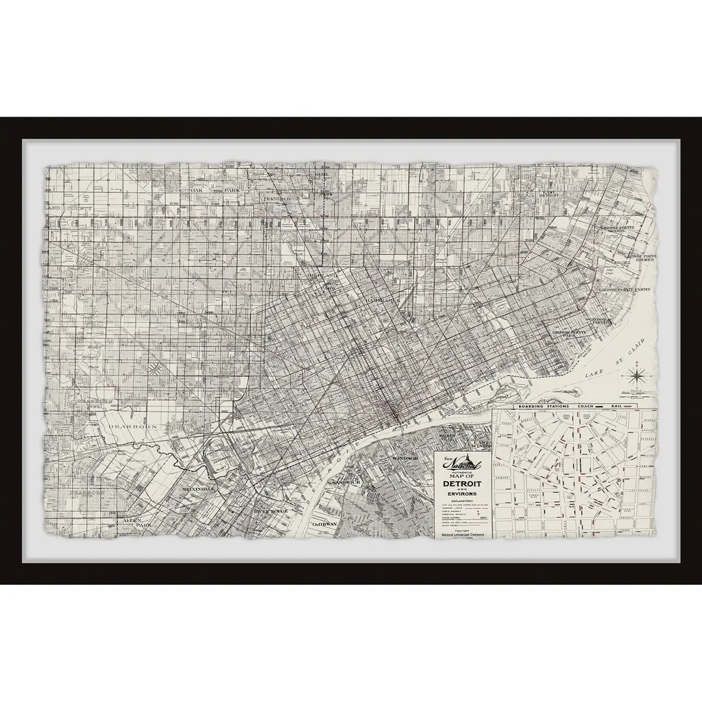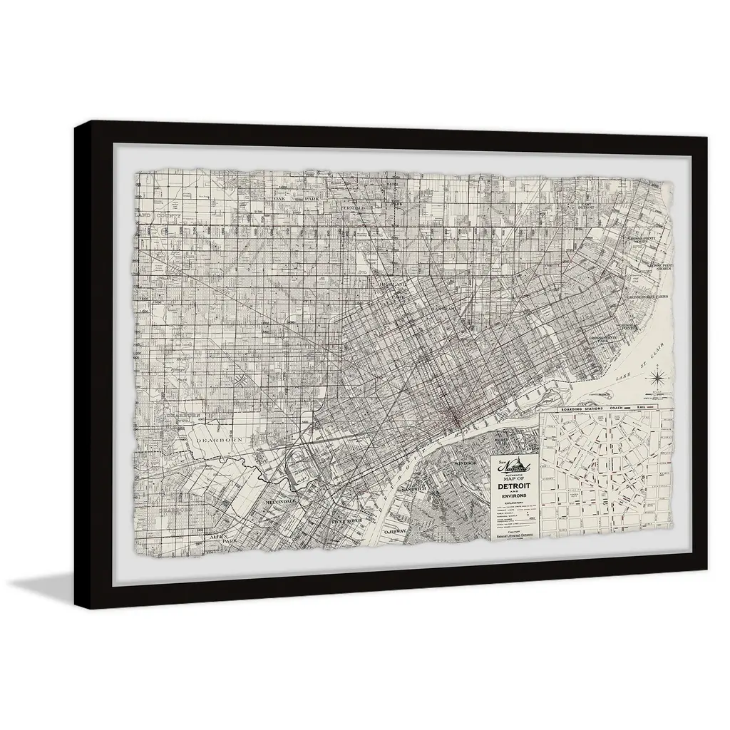 'Vintage Detroit Map' Framed Painting Print - 30 X 20