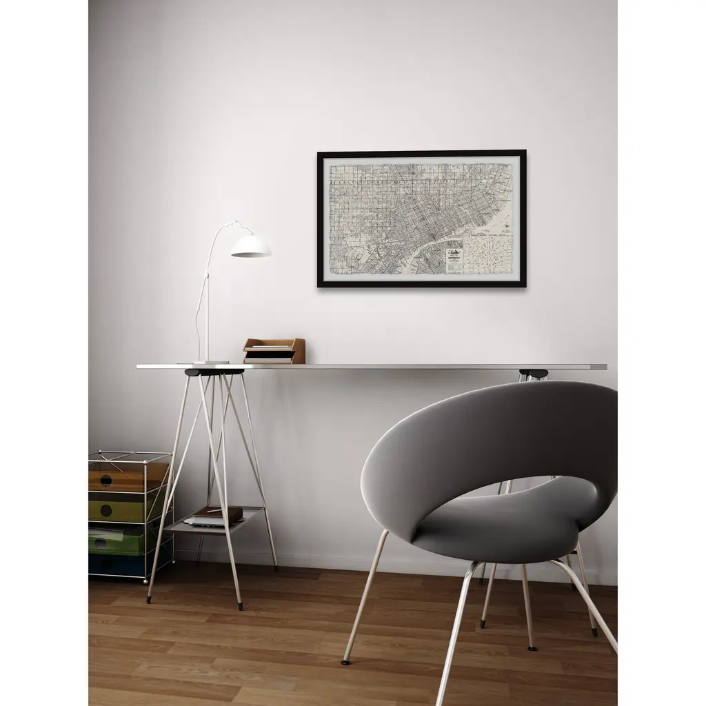 This black and white print features a bird's eye map of Detroit and all that it has to offer. Proudly printed in the USA, this piece is printed on high quality archive paper and professionally hand-framed. With wall-mounting hooks included, this artful accent is ready to hang up as soon as it reaches your front door. • Top quality Giclee print on high resolution Archive Paper • Hand cut deckled edges • High quality durable non-warping frame • Finished under shatter resistant plexiglass • Arrives ready to hang • Includes a certificate of authenticity • Printed the USA