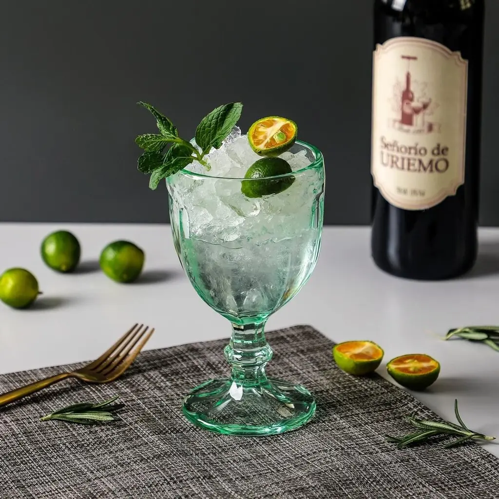 Vintage Embossed Glass Goblet (10.2 Oz. Set Of 6) - 3.94"d X 5.51"h - Green