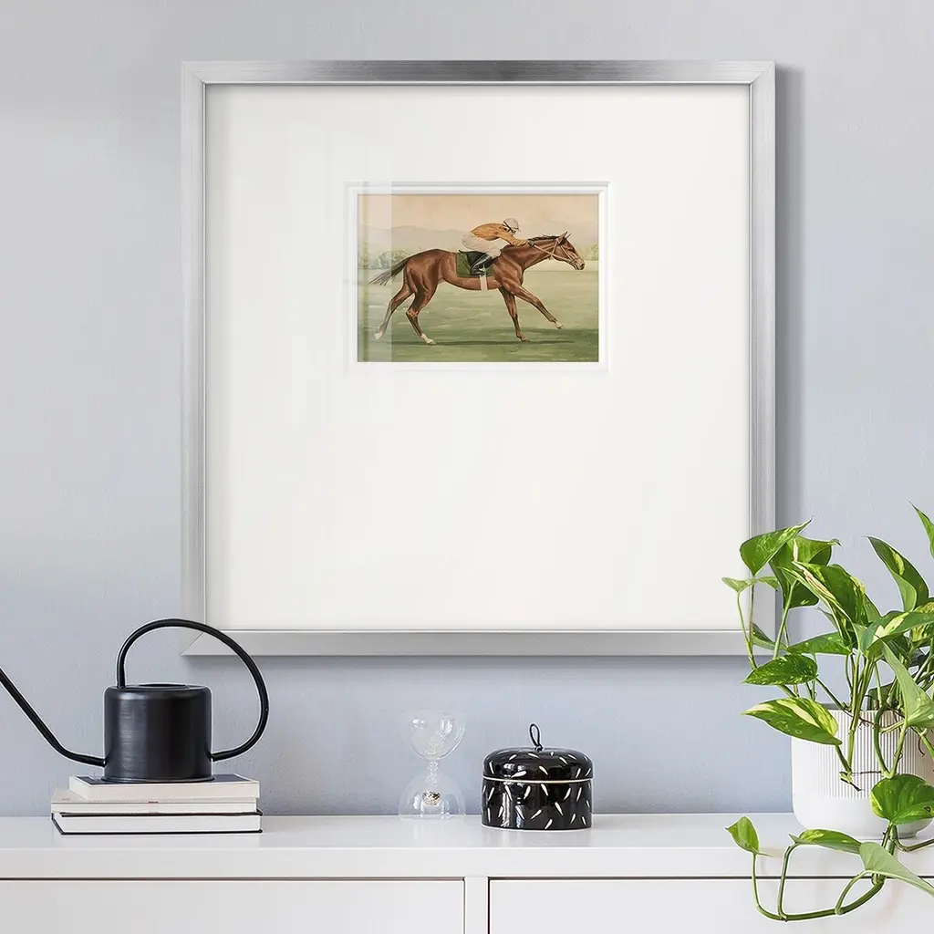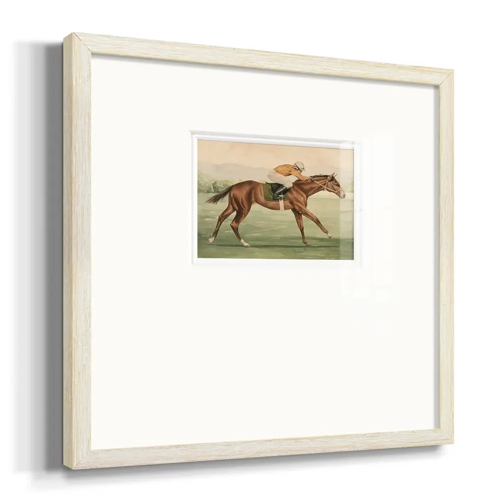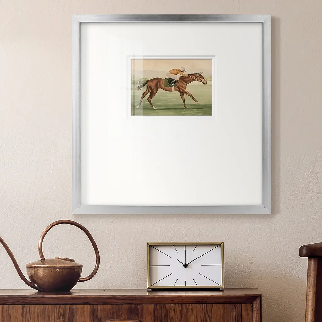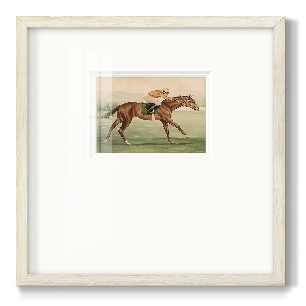 Vintage Equestrian IIPremium Framed Print A framed cold pressed paper print featuring superior double matting and quality frame. 2 SIZES AVAILABLE 16''X16''' - Overall Size 20''X20''' - Overall Size Each piece is made to order. Each piece comes with hanging hardware. Made in the USA Ready to Hang Giclee Paper Print Plexiglass Beveled Matt Board Double Matte Board