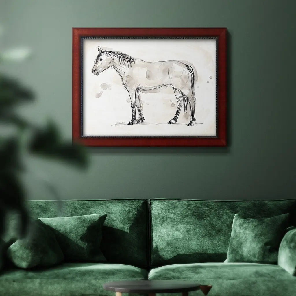 Vintage Equine Sketch I Premium Framed Canvas- Ready To Hang - 18x27 - Mahogany