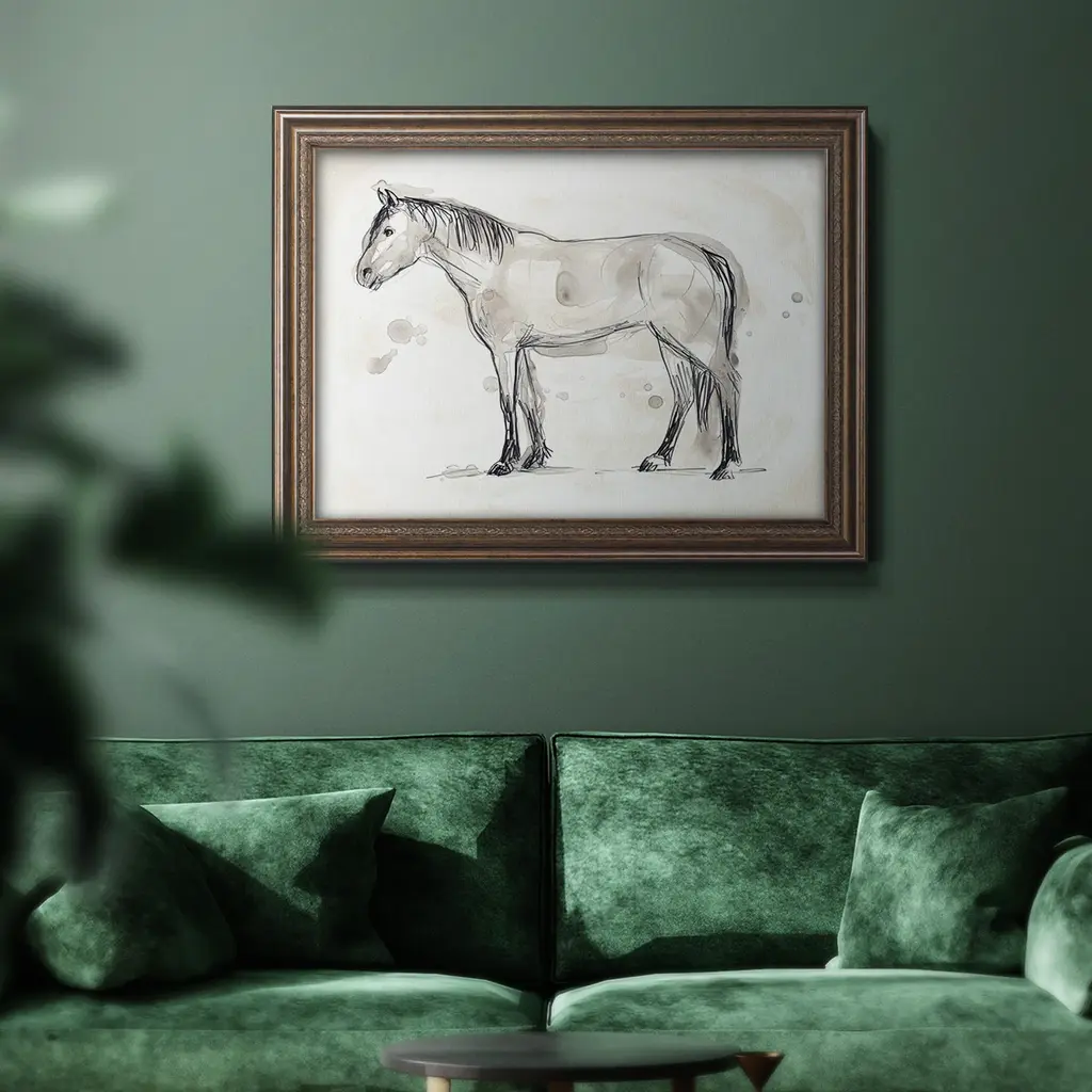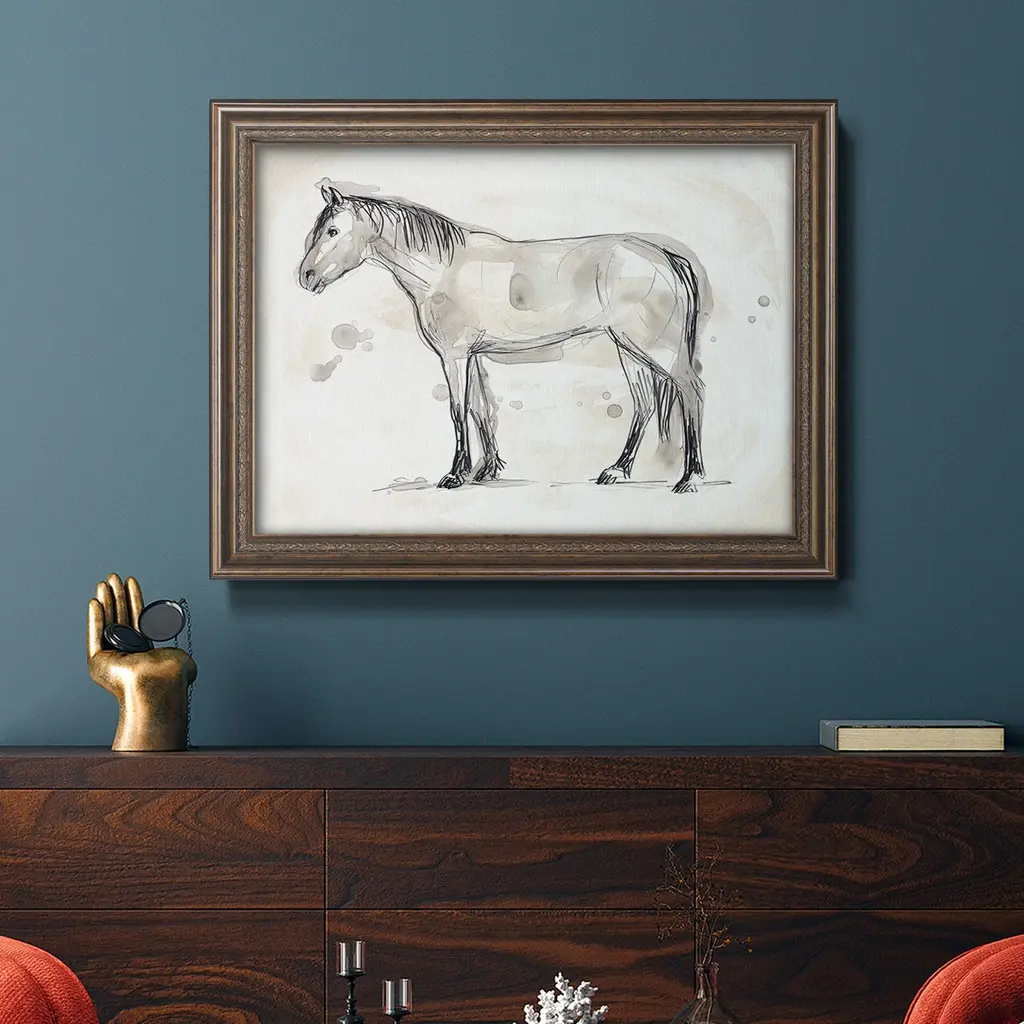 Vintage Equine Sketch I Premium Framed Canvas- Ready To Hang - 18x27 - Walnut