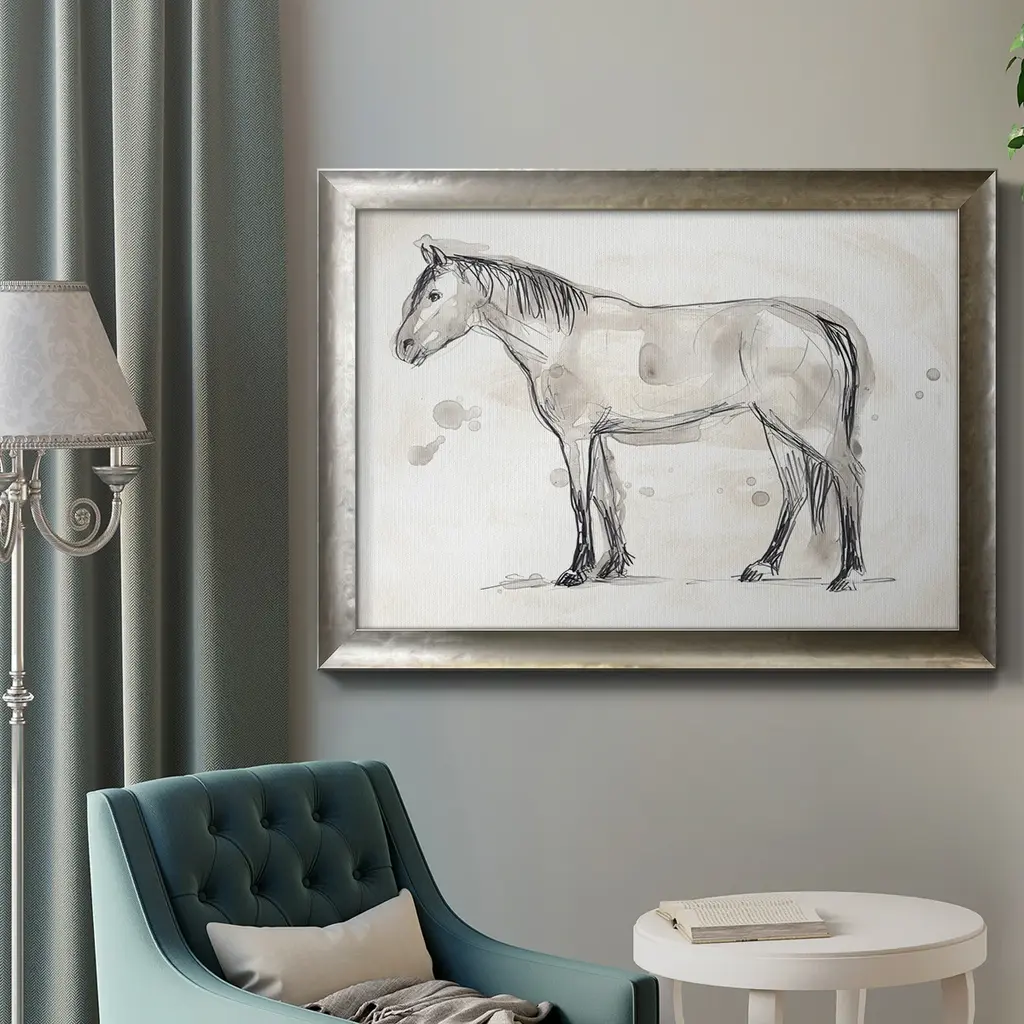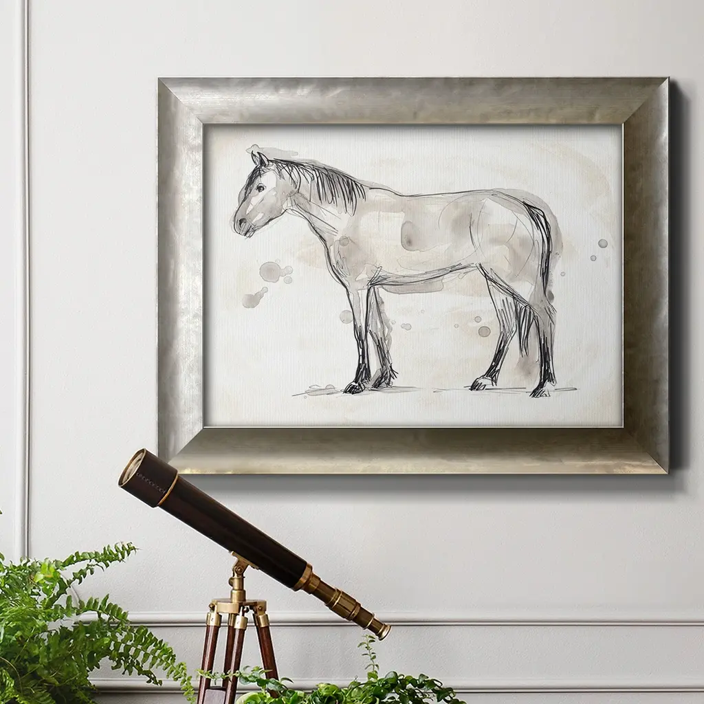 Vintage Equine Sketch I Premium Framed Canvas- Ready To Hang - 24x36 - Silver