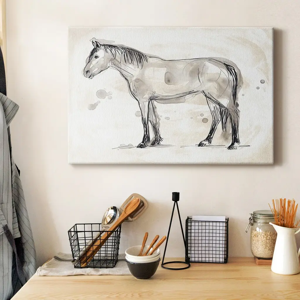 Vintage Equine Sketch I Premium Gallery Wrapped Canvas - Ready to Hang A premium hand stretched gallery wrapped canvas print created to last. Featuring a beveled a solid wood stretcher bar, each piece comes ready to hand 6 SIZES AVAILABLE 8''X12'' - Overall Size 12''X18'' - Overall Size 18''X27'' - Overall Size 24''x36'' - Overall Size 32''x48'' - Overall Size 40''x60'' - Overall Size Each piece is made to order. Built to Last Each piece comes ready to hang Solid wood stretcher Fade and Water resistant Made domestically