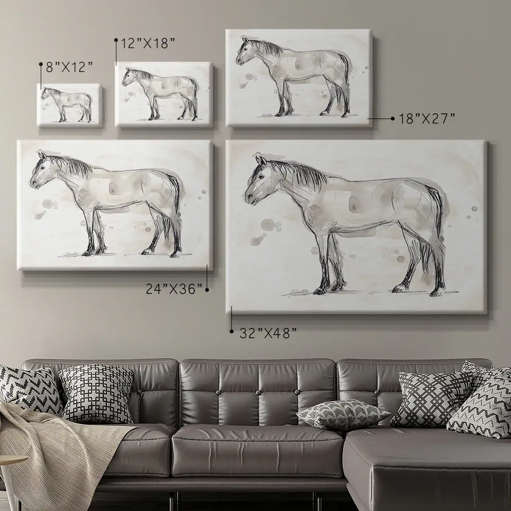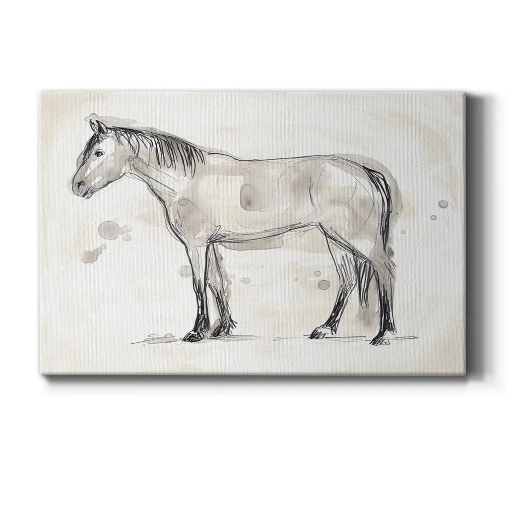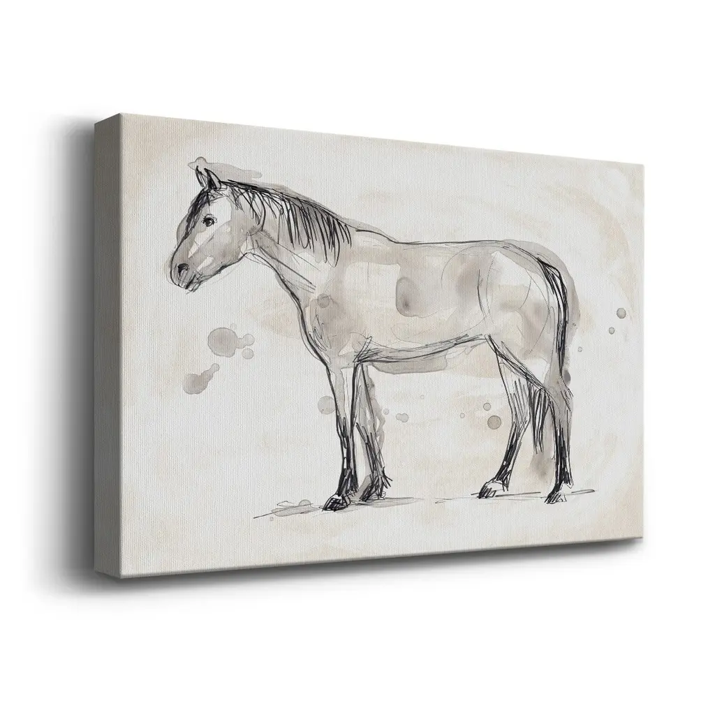 Vintage Equine Sketch I Premium Gallery Wrapped Canvas - Ready to Hang A premium hand stretched gallery wrapped canvas print created to last. Featuring a beveled a solid wood stretcher bar, each piece comes ready to hand 6 SIZES AVAILABLE 8''X12'' - Overall Size 12''X18'' - Overall Size 18''X27'' - Overall Size 24''x36'' - Overall Size 32''x48'' - Overall Size 40''x60'' - Overall Size Each piece is made to order. Built to Last Each piece comes ready to hang Solid wood stretcher Fade and Water resistant Made domestically
