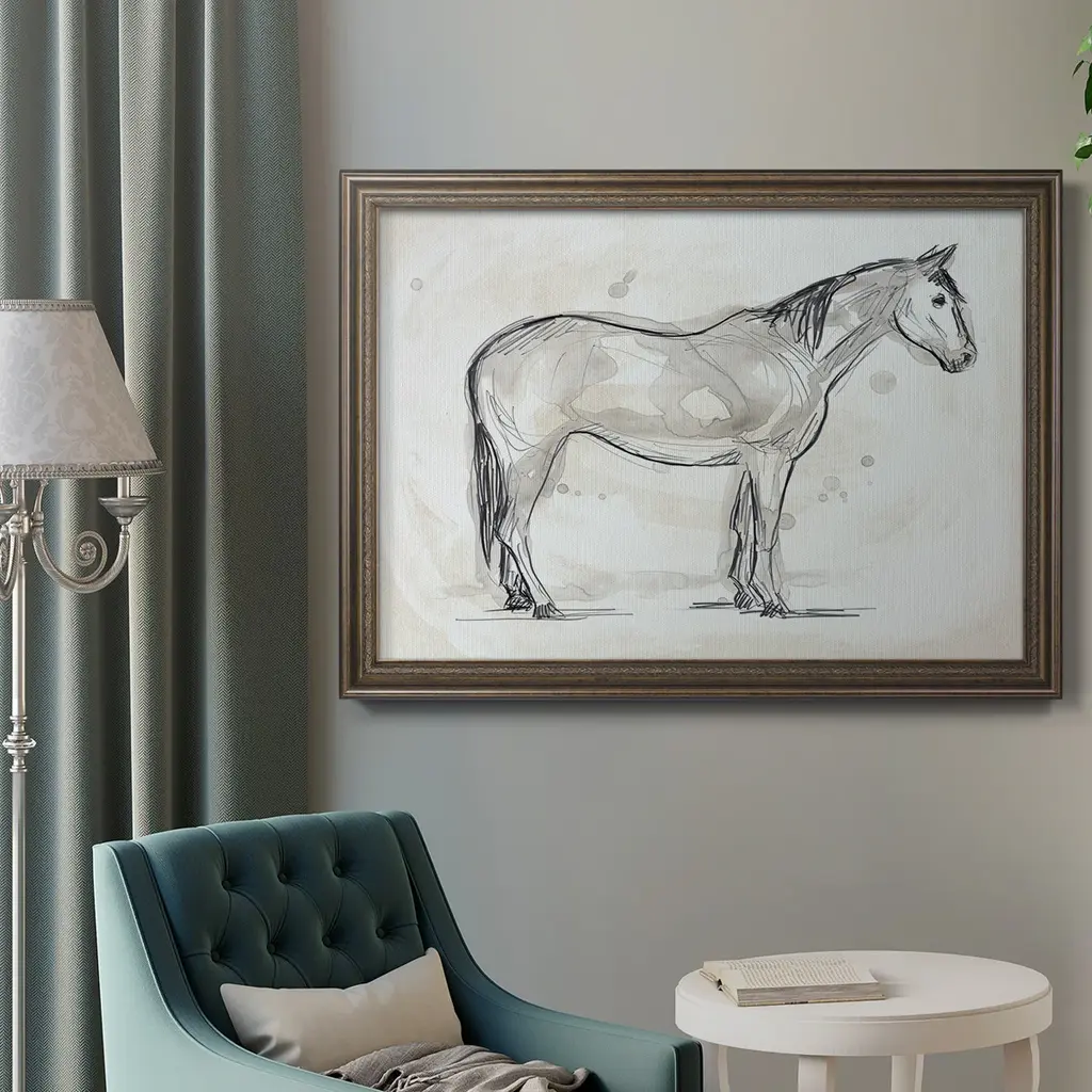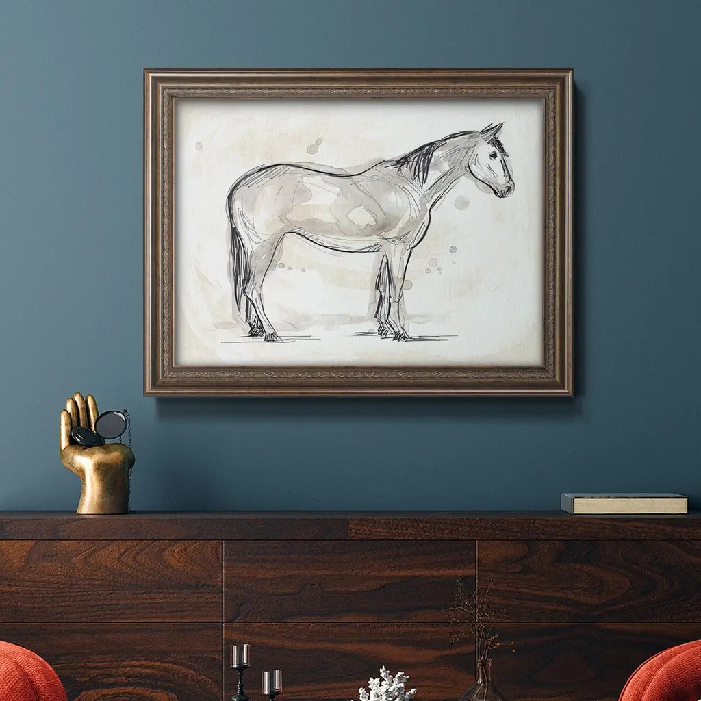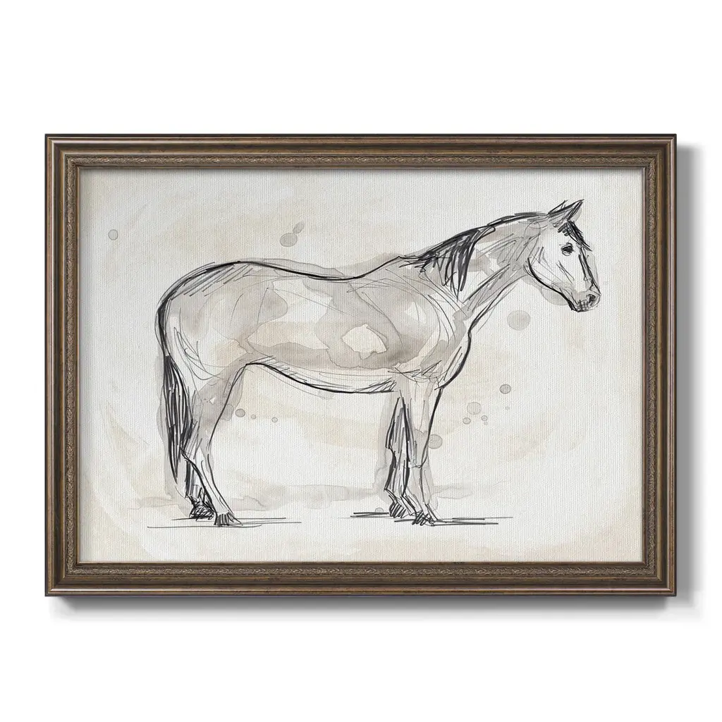 Vintage Equine Sketch Ii Premium Framed Canvas- Ready To Hang - 24x36 - Walnut
