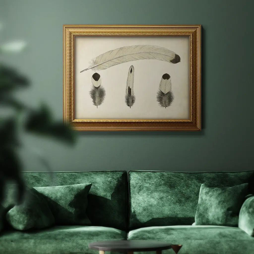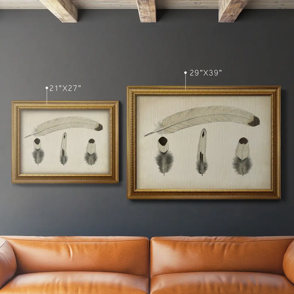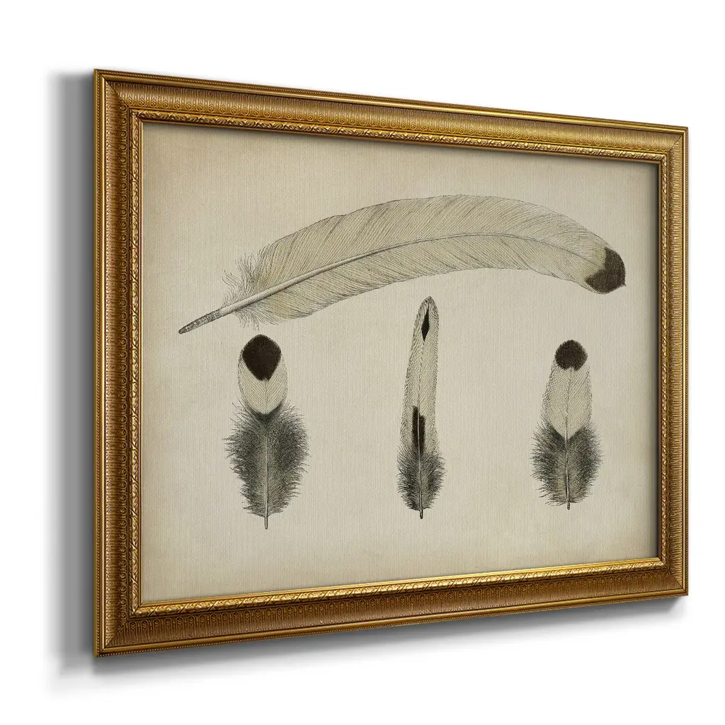 Vintage Feathers V Premium Framed Canvas- Ready To Hang - 18x27 - Gold