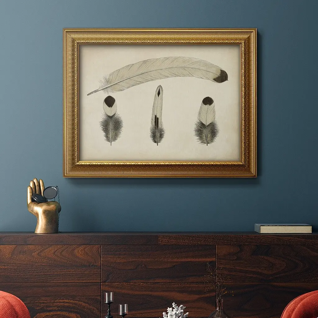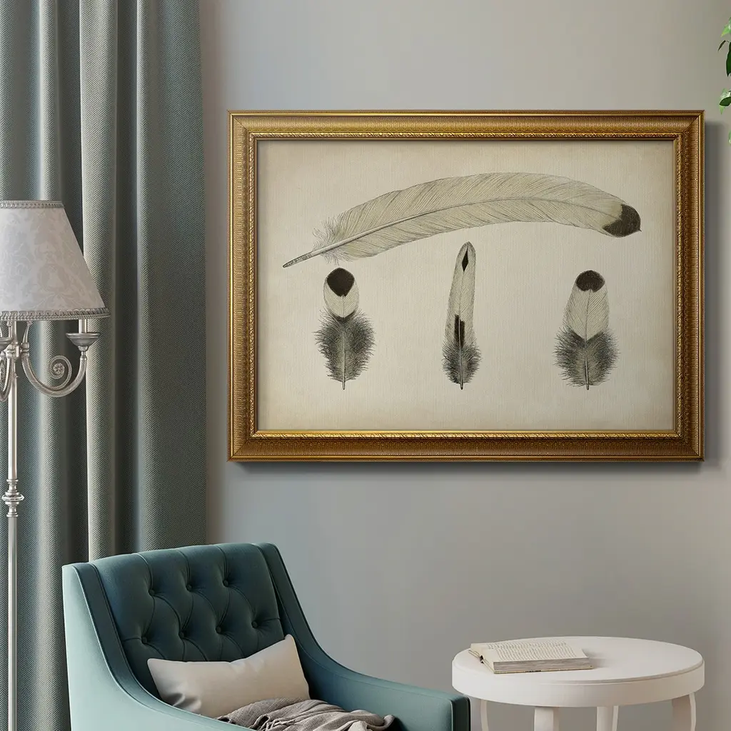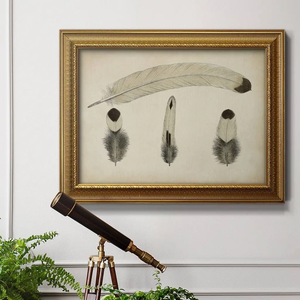 Vintage Feathers V Premium Framed Canvas- Ready To Hang - 18x27 - Gold