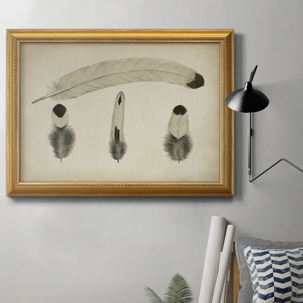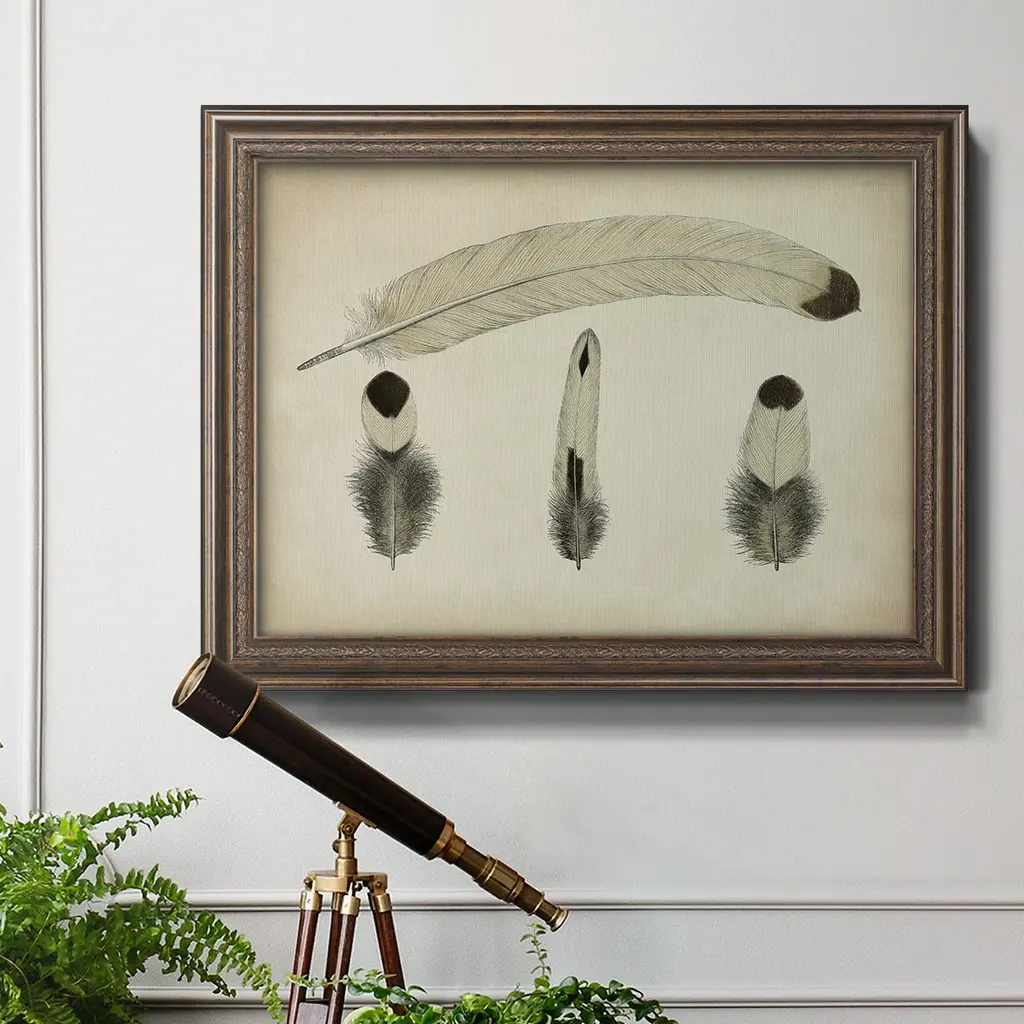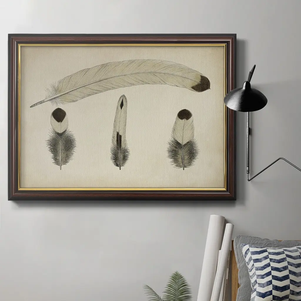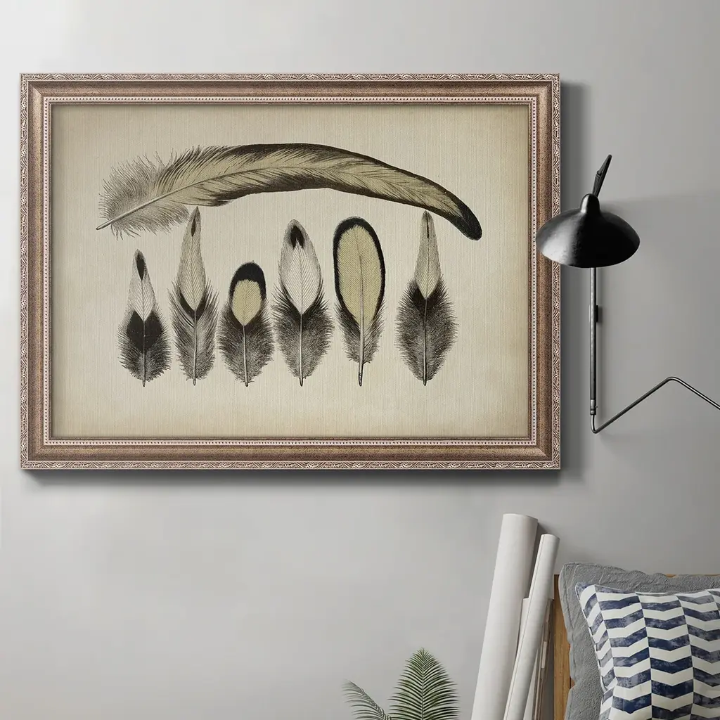 Vintage Feathers V Premium Framed Canvas- Ready To Hang - 18x27 - Walnut