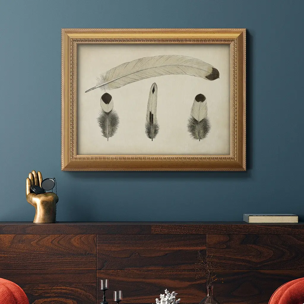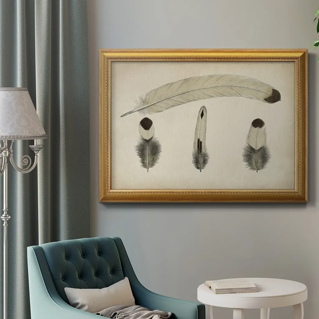 Vintage Feathers V Premium Framed Canvas- Ready To Hang - 24x36 - Gold