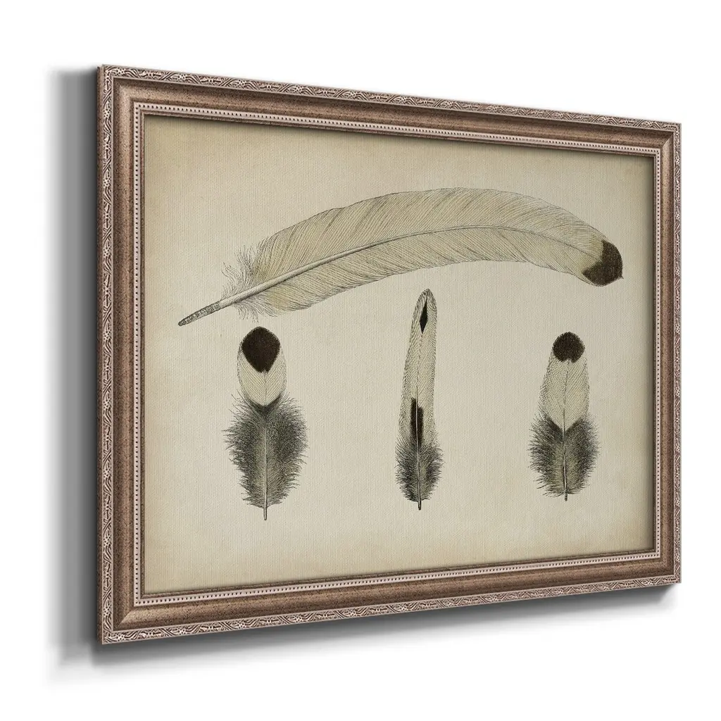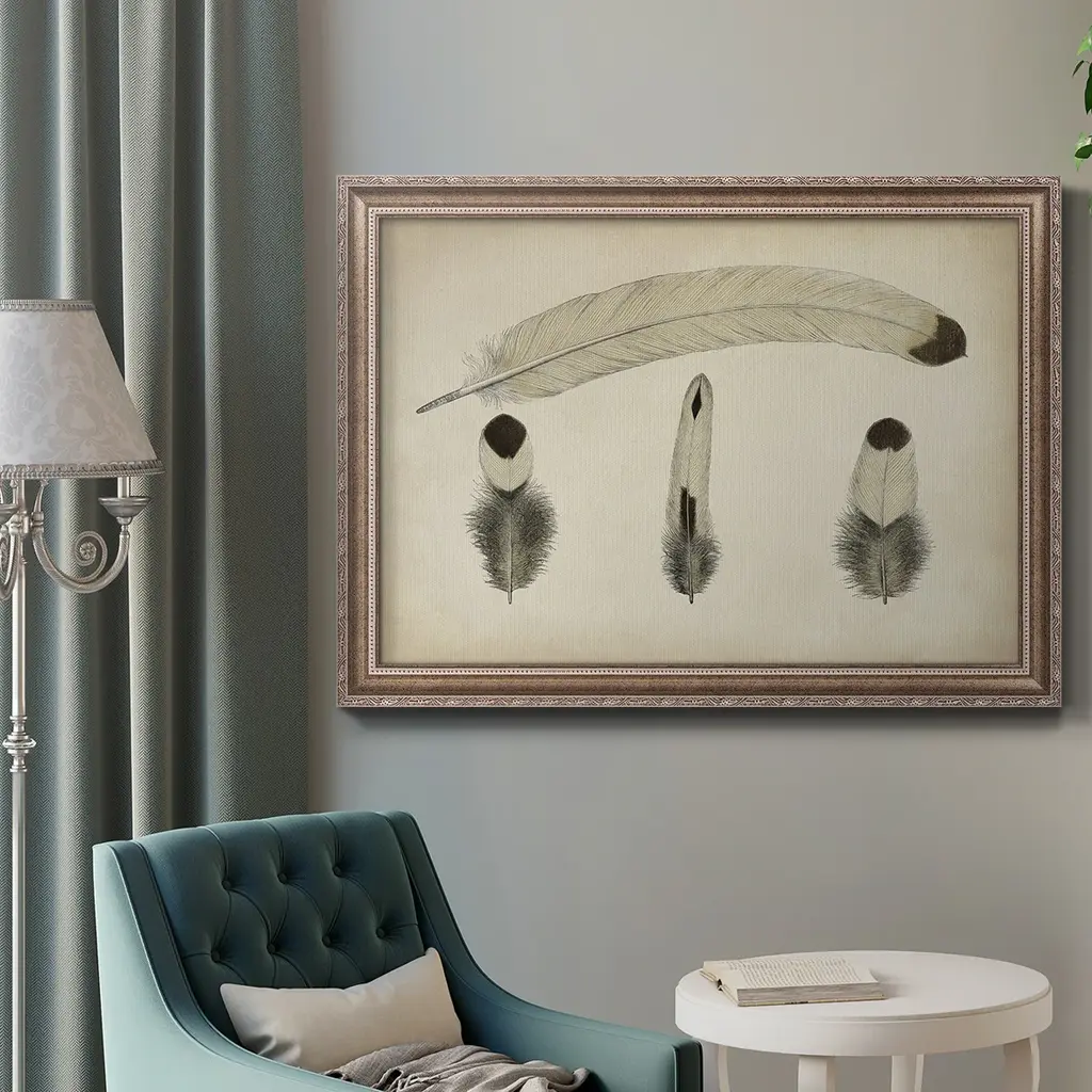 Vintage Feathers V Premium Framed Canvas- Ready To Hang - 24x36 - Pewter