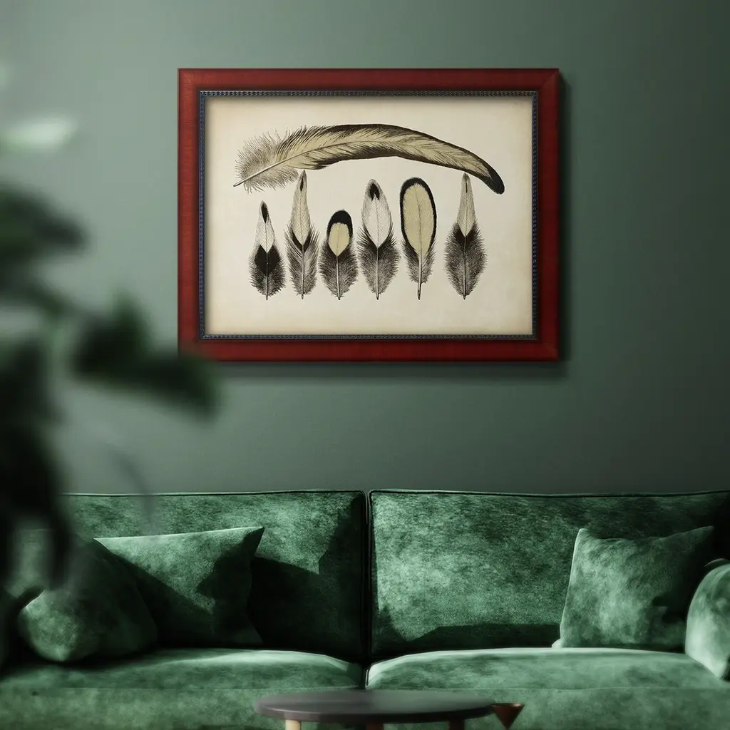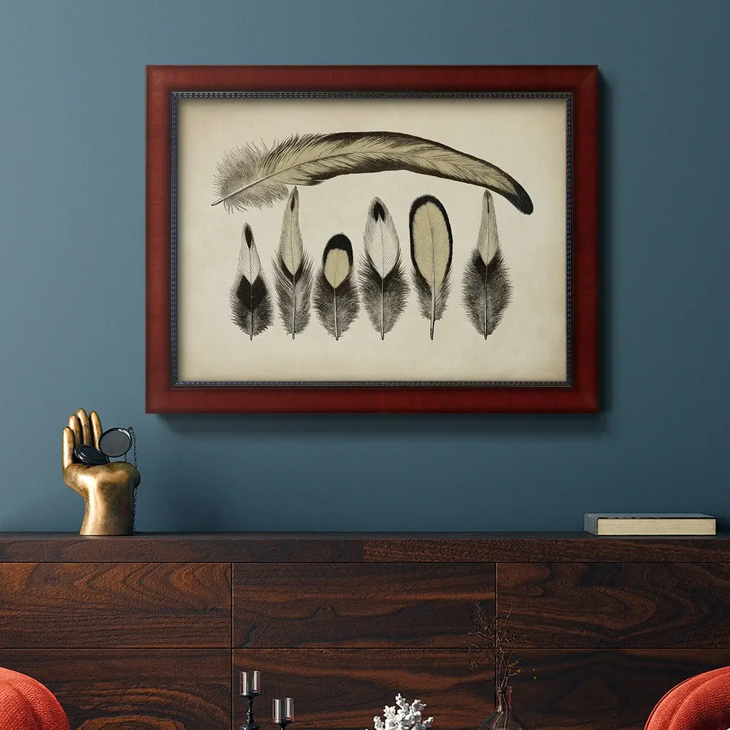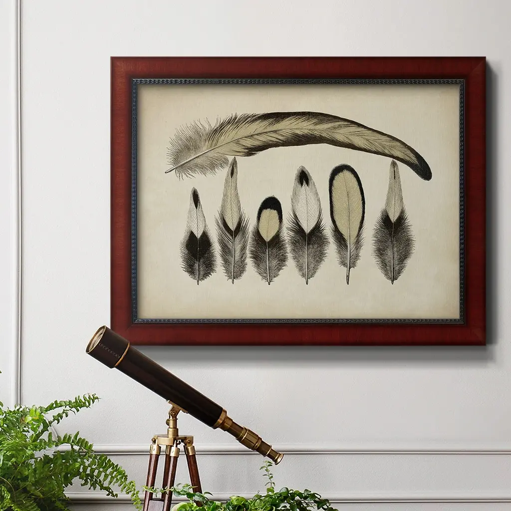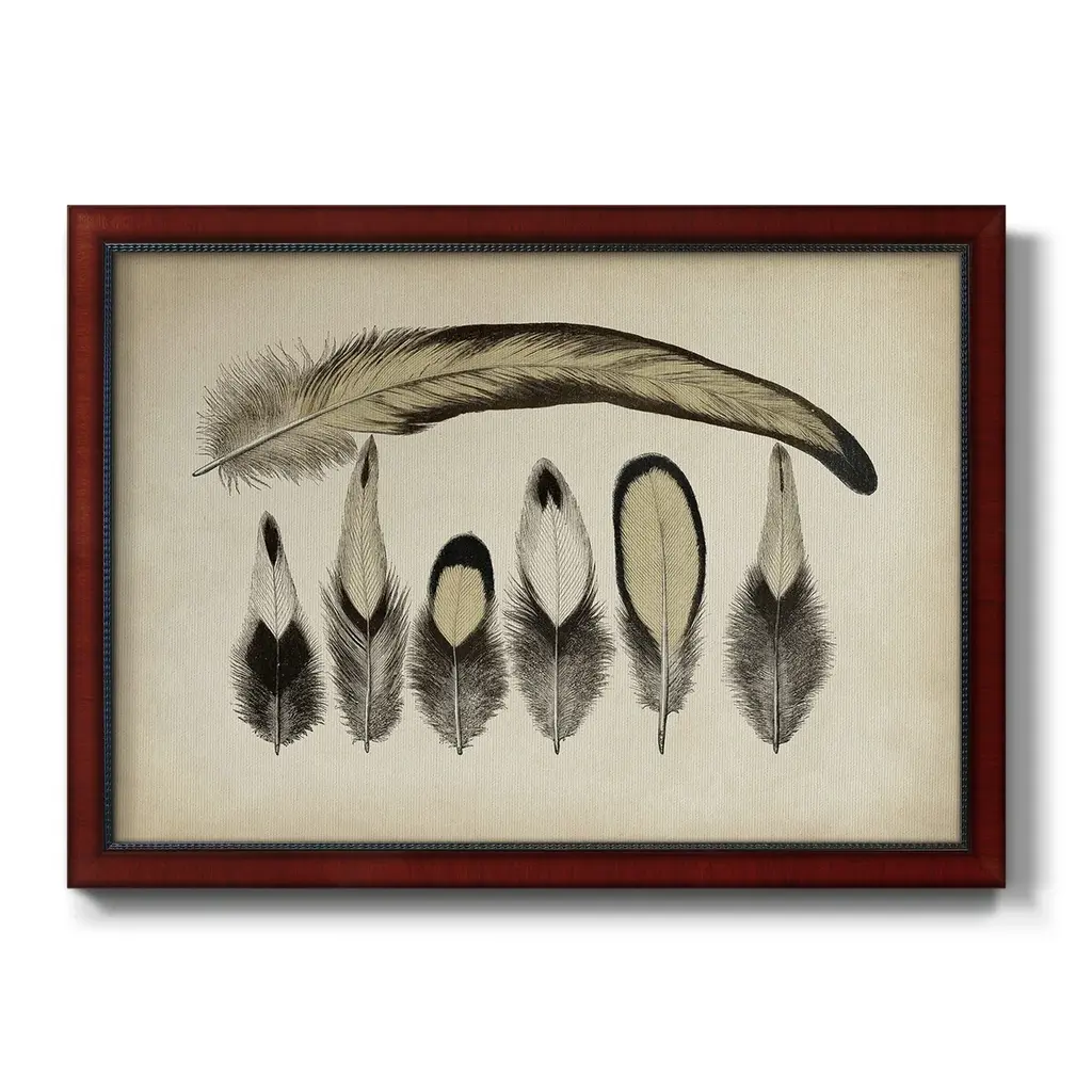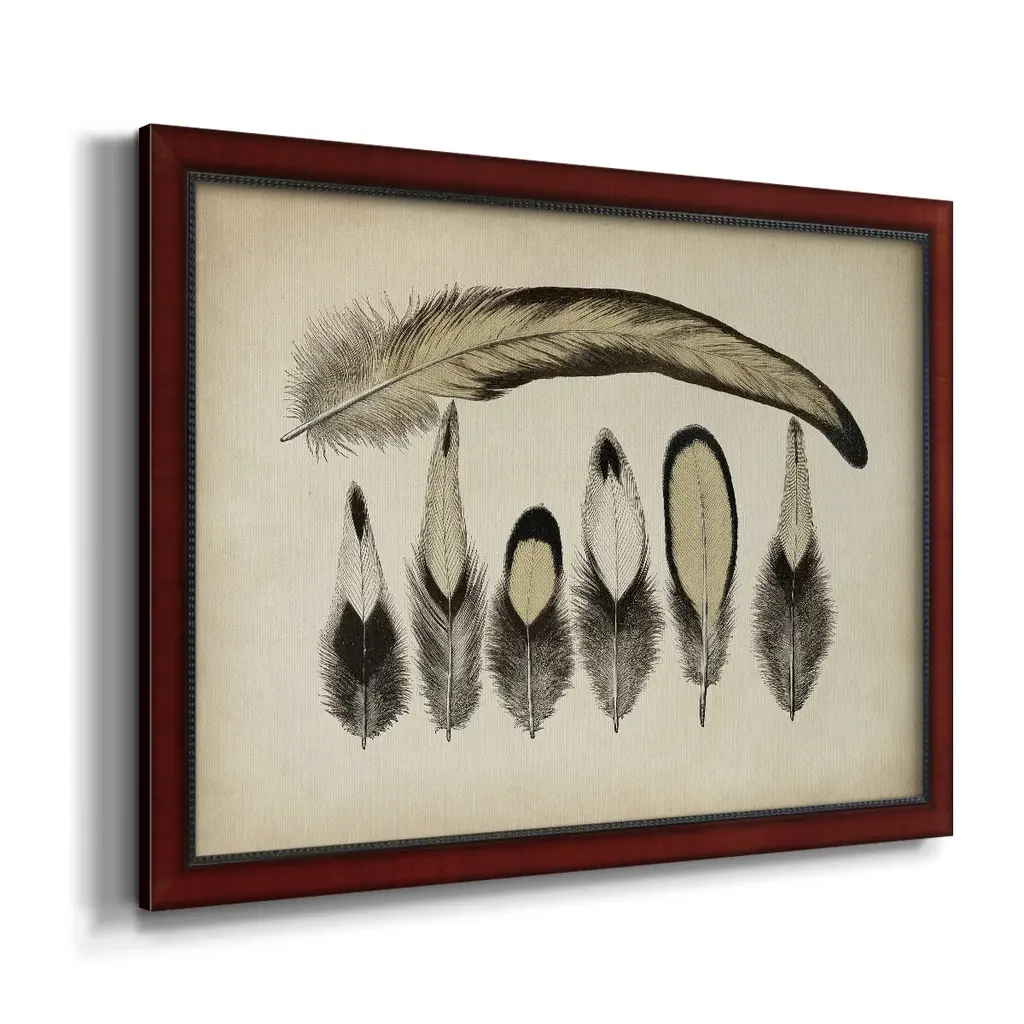 Vintage Feathers Vii Premium Framed Canvas- Ready To Hang - 18x27 - Mahogany