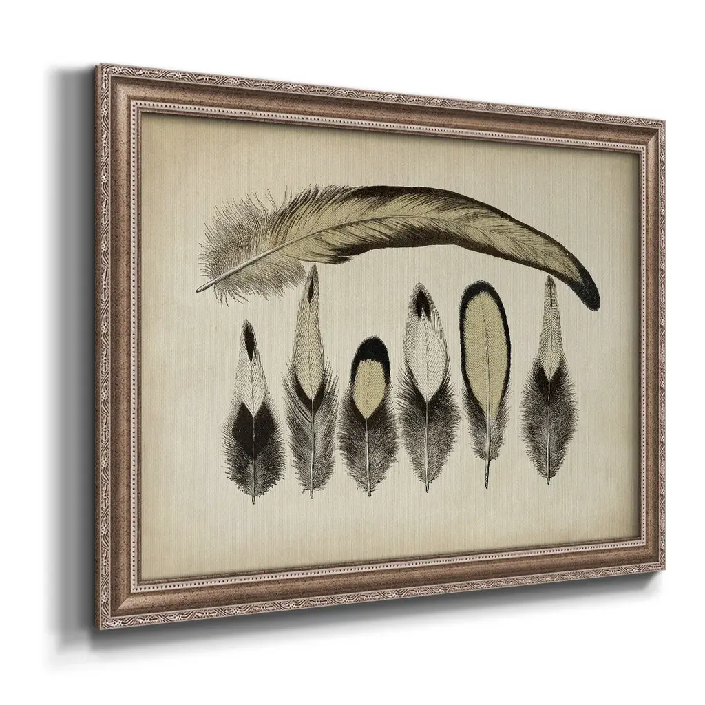 Vintage Feathers Vii Premium Framed Canvas- Ready To Hang - 18x27 - Pewter