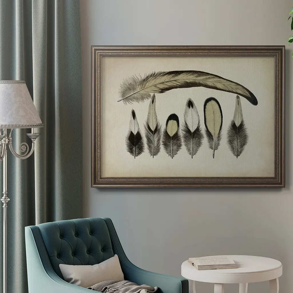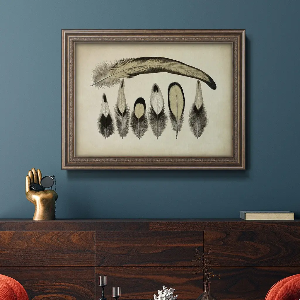 Vintage Feathers Vii Premium Framed Canvas- Ready To Hang - 18x27 - Walnut