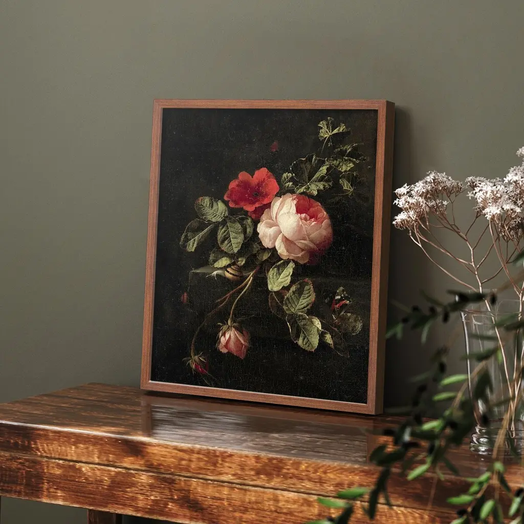 Vintage Floral Print CCCLXI -Framed Print A qulity framed print in a solid wood frame 2 SIZES AVAILABLE Overall Size - 8x10 each piece Overall Size - 11x14 each piece Each piece is made to order. Built to Last Each piece comes ready to hang Solid wood Frame Fade and Water resistant Made domestically