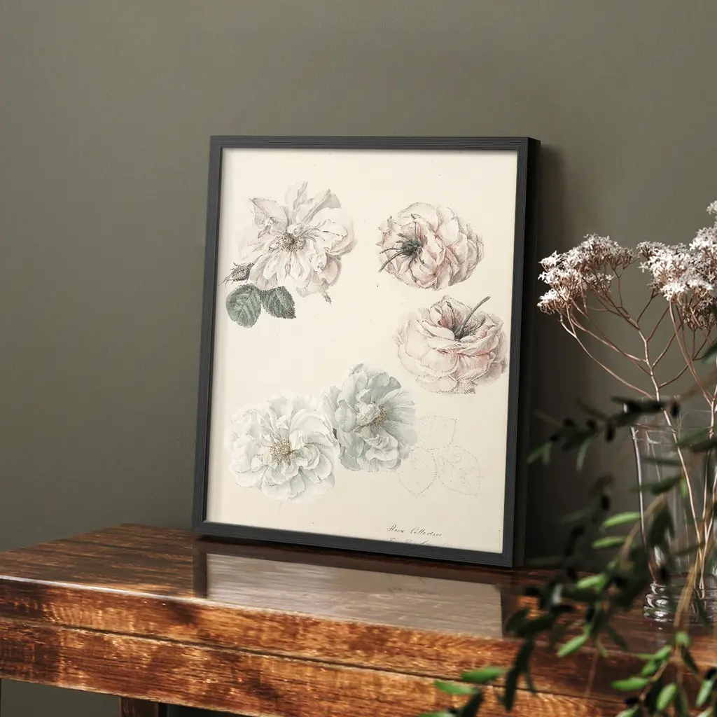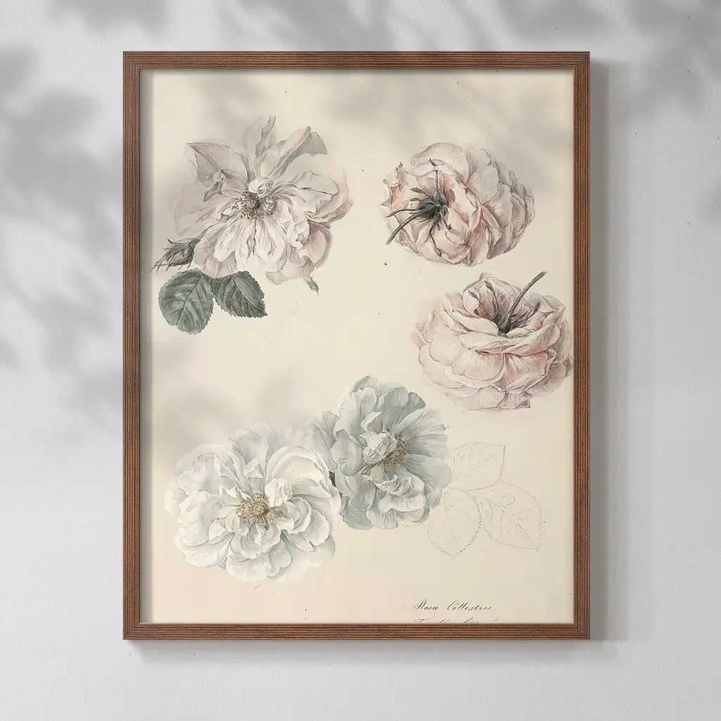 Vintage Floral Print CCXVIII -Framed Print A qulity framed print in a solid wood frame 2 SIZES AVAILABLE Overall Size - 8x10 each piece Overall Size - 11x14 each piece Each piece is made to order. Built to Last Each piece comes ready to hang Solid wood Frame Fade and Water resistant Made domestically