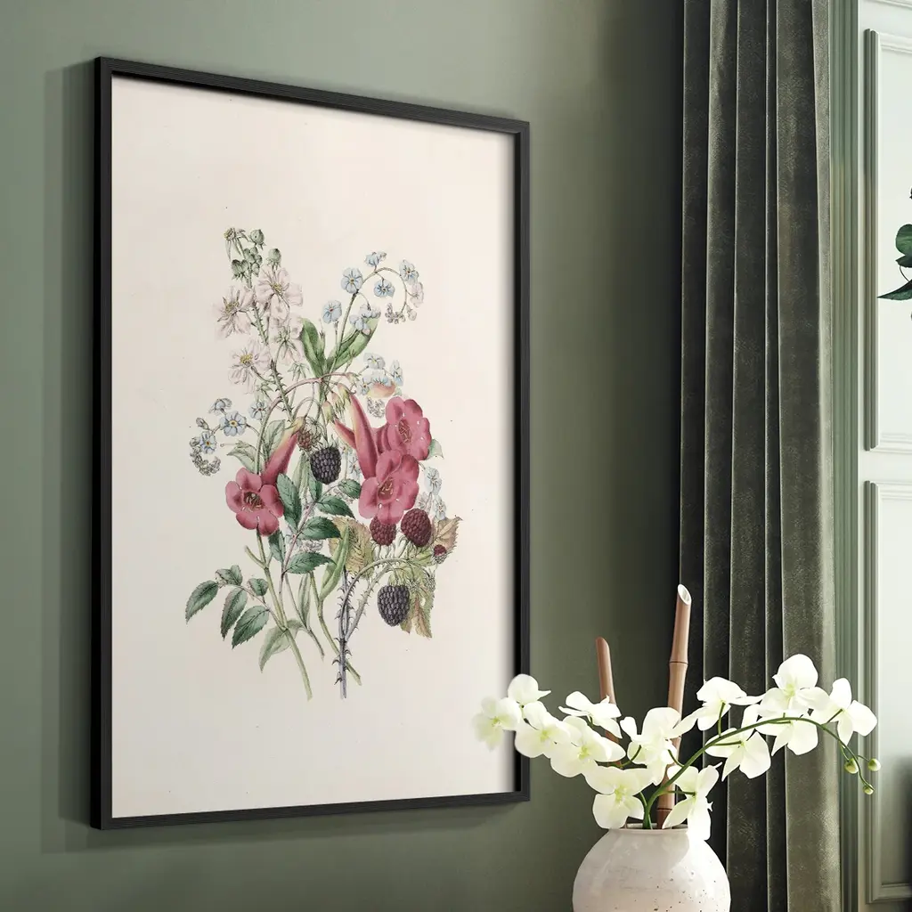 Vintage Floral Print CXCVI -Framed Print A qulity framed print in a solid wood frame 2 SIZES AVAILABLE Overall Size - 8x10 each piece Overall Size - 11x14 each piece Each piece is made to order. Built to Last Each piece comes ready to hang Solid wood Frame Fade and Water resistant Made domestically