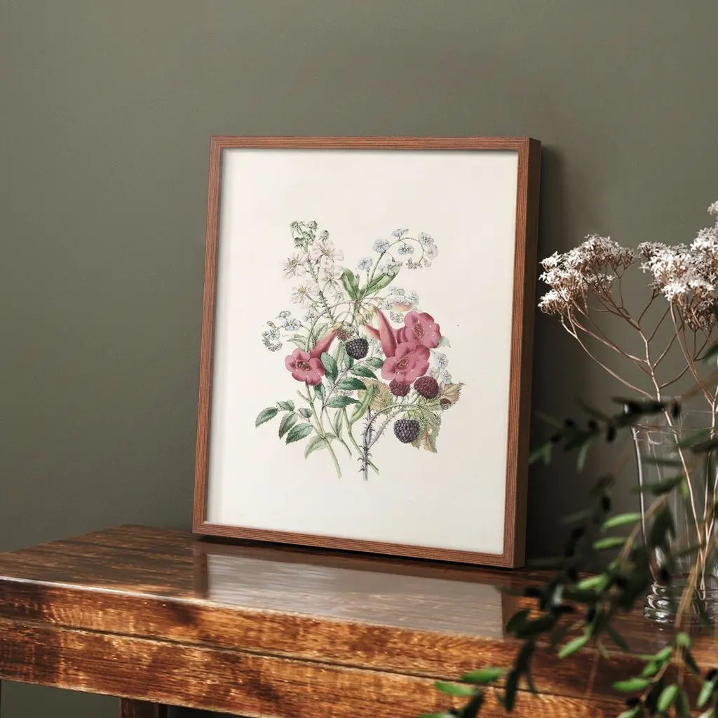 Vintage Floral Print CXCVI -Framed Print A qulity framed print in a solid wood frame 2 SIZES AVAILABLE Overall Size - 8x10 each piece Overall Size - 11x14 each piece Each piece is made to order. Built to Last Each piece comes ready to hang Solid wood Frame Fade and Water resistant Made domestically