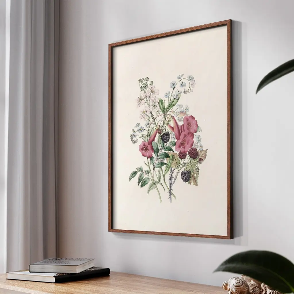 Vintage Floral Print Cxcvi -Framed Print - 8X10 - Walnut