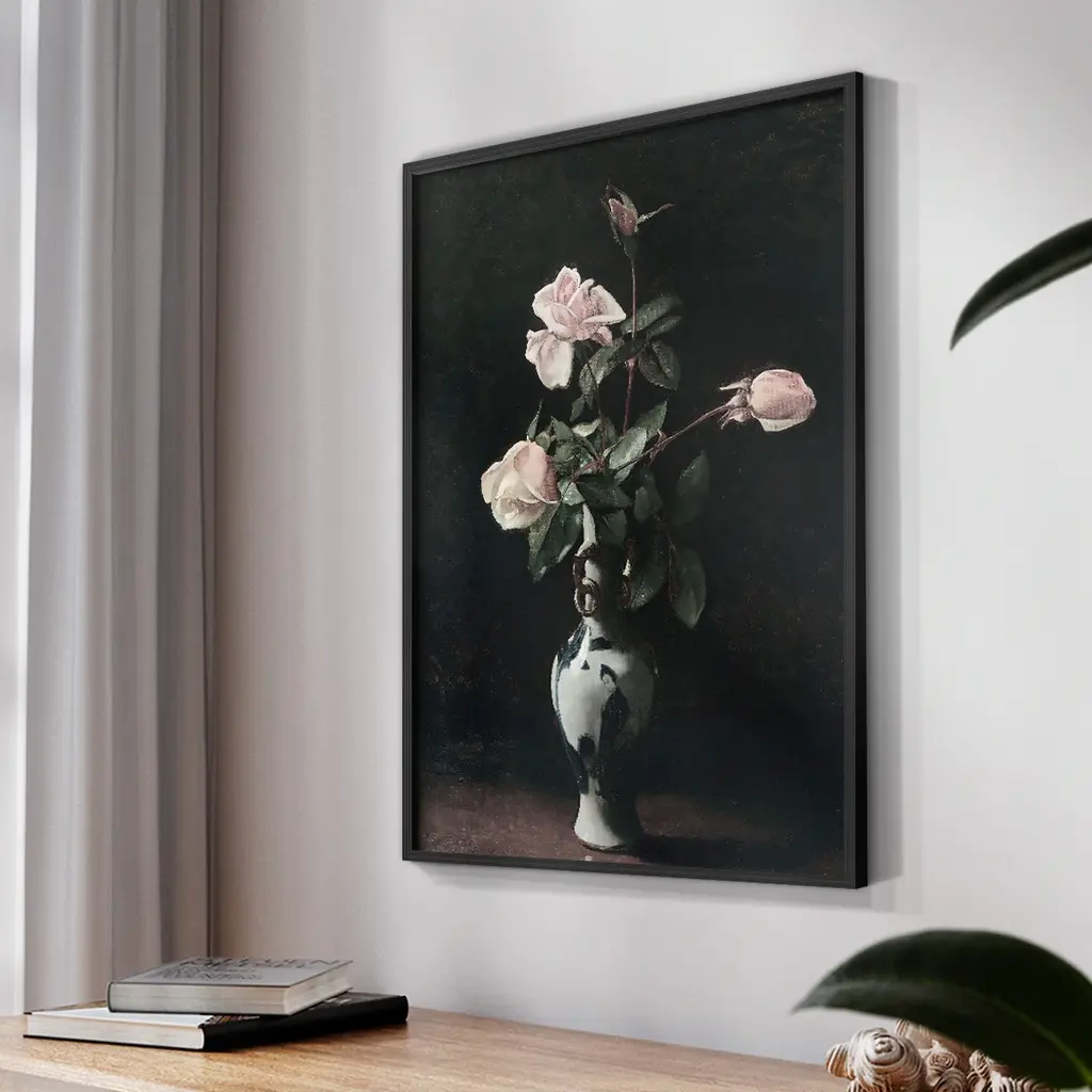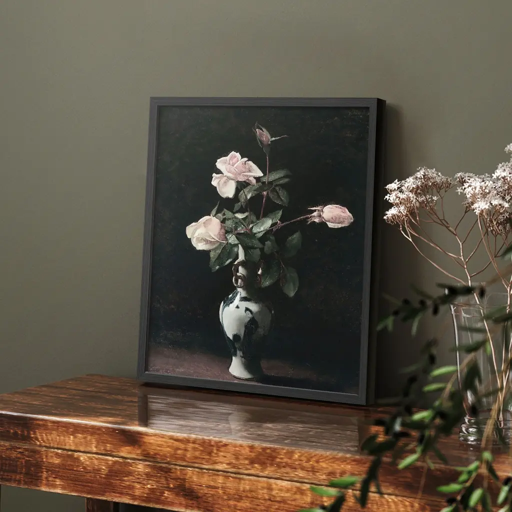 Vintage Floral Print L -Framed Print - 8X10 - Black