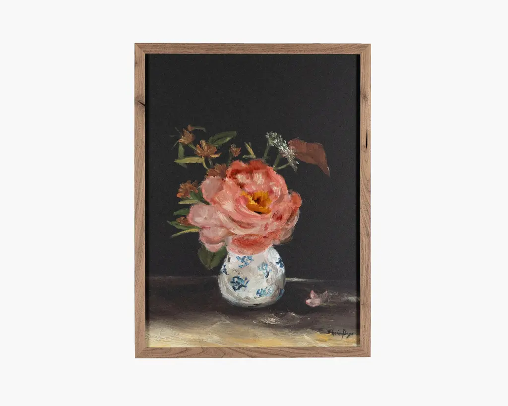 Vintage Floral Print Lv -Framed Print - 8X10 - Walnut