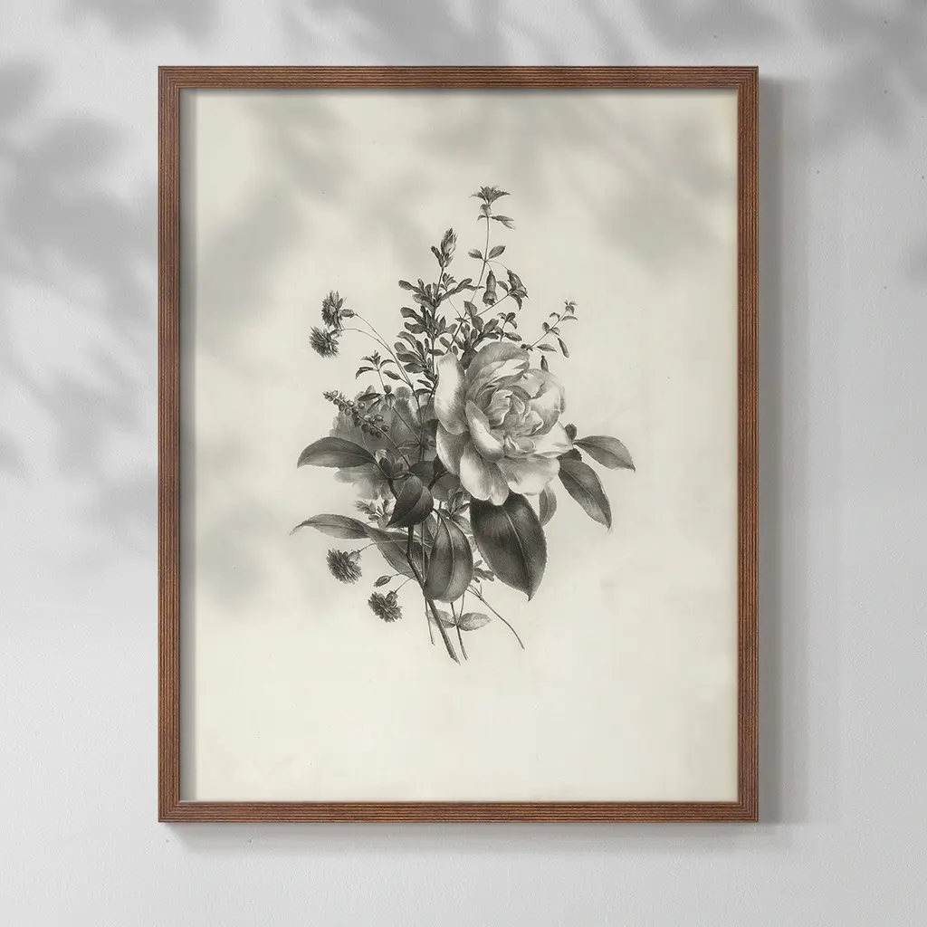 Vintage Floral Print XIX -Framed Print A qulity framed print in a solid wood frame 2 SIZES AVAILABLE Overall Size - 8x10 each piece Overall Size - 11x14 each piece Each piece is made to order. Built to Last Each piece comes ready to hang Solid wood Frame Fade and Water resistant Made domestically
