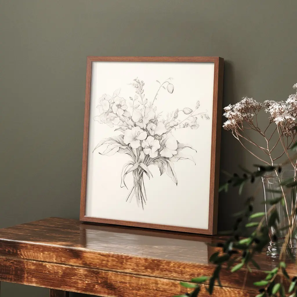 Vintage Floral Print XVI -Framed Print A qulity framed print in a solid wood frame 2 SIZES AVAILABLE Overall Size - 8x10 each piece Overall Size - 11x14 each piece Each piece is made to order. Built to Last Each piece comes ready to hang Solid wood Frame Fade and Water resistant Made domestically