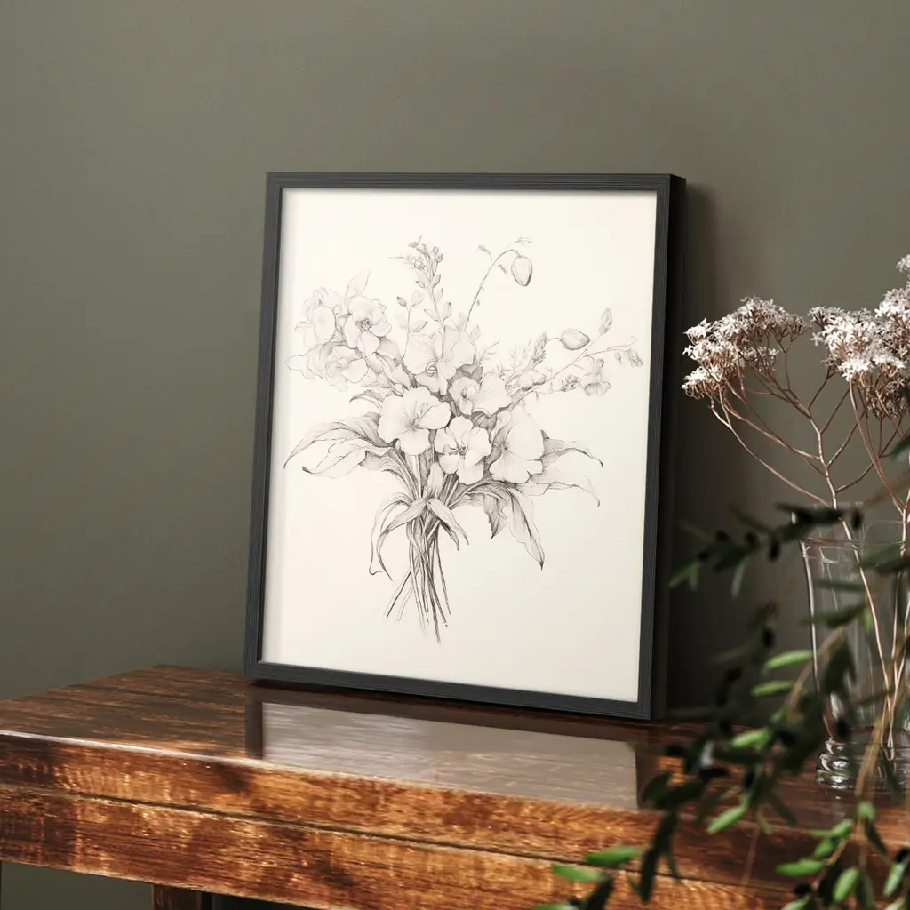 Vintage Floral Print XVI -Framed Print A qulity framed print in a solid wood frame 2 SIZES AVAILABLE Overall Size - 8x10 each piece Overall Size - 11x14 each piece Each piece is made to order. Built to Last Each piece comes ready to hang Solid wood Frame Fade and Water resistant Made domestically