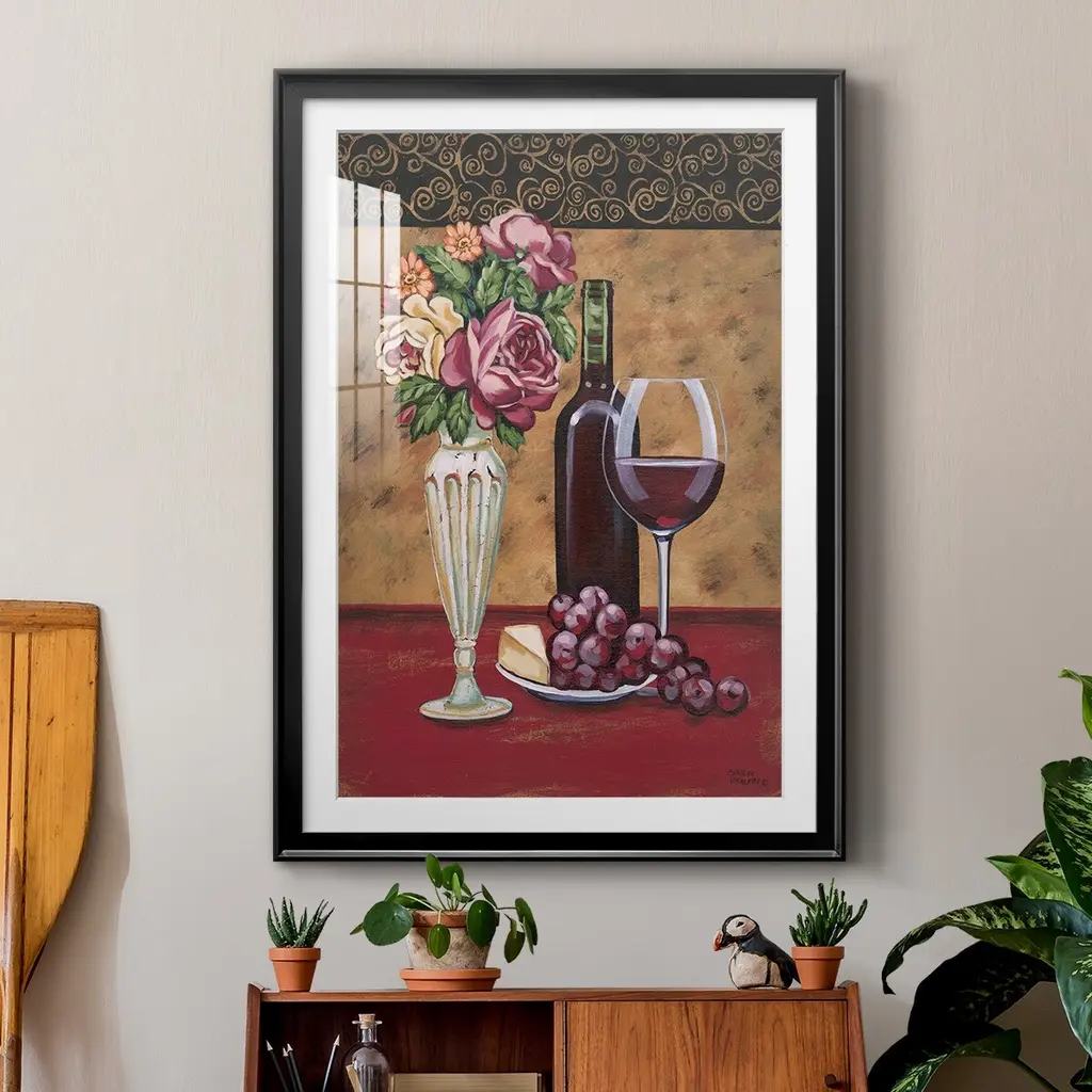Vintage Flowers And Wine I Premium Framed Print - Ready To Hang - 30.5x42.5 - Black