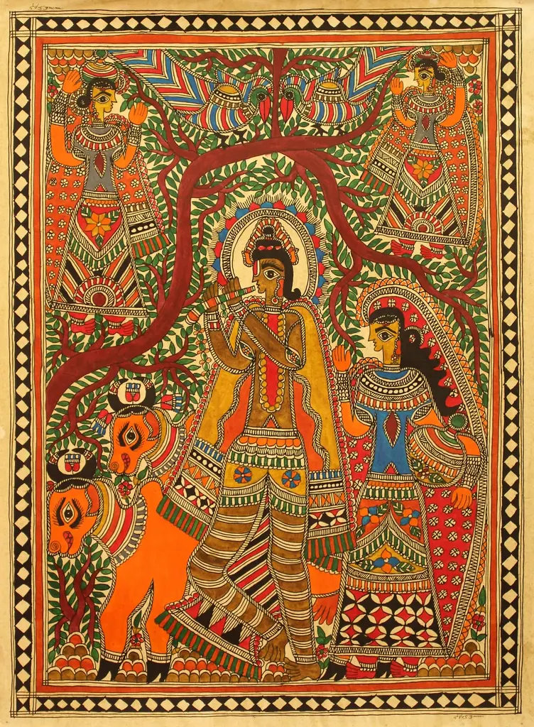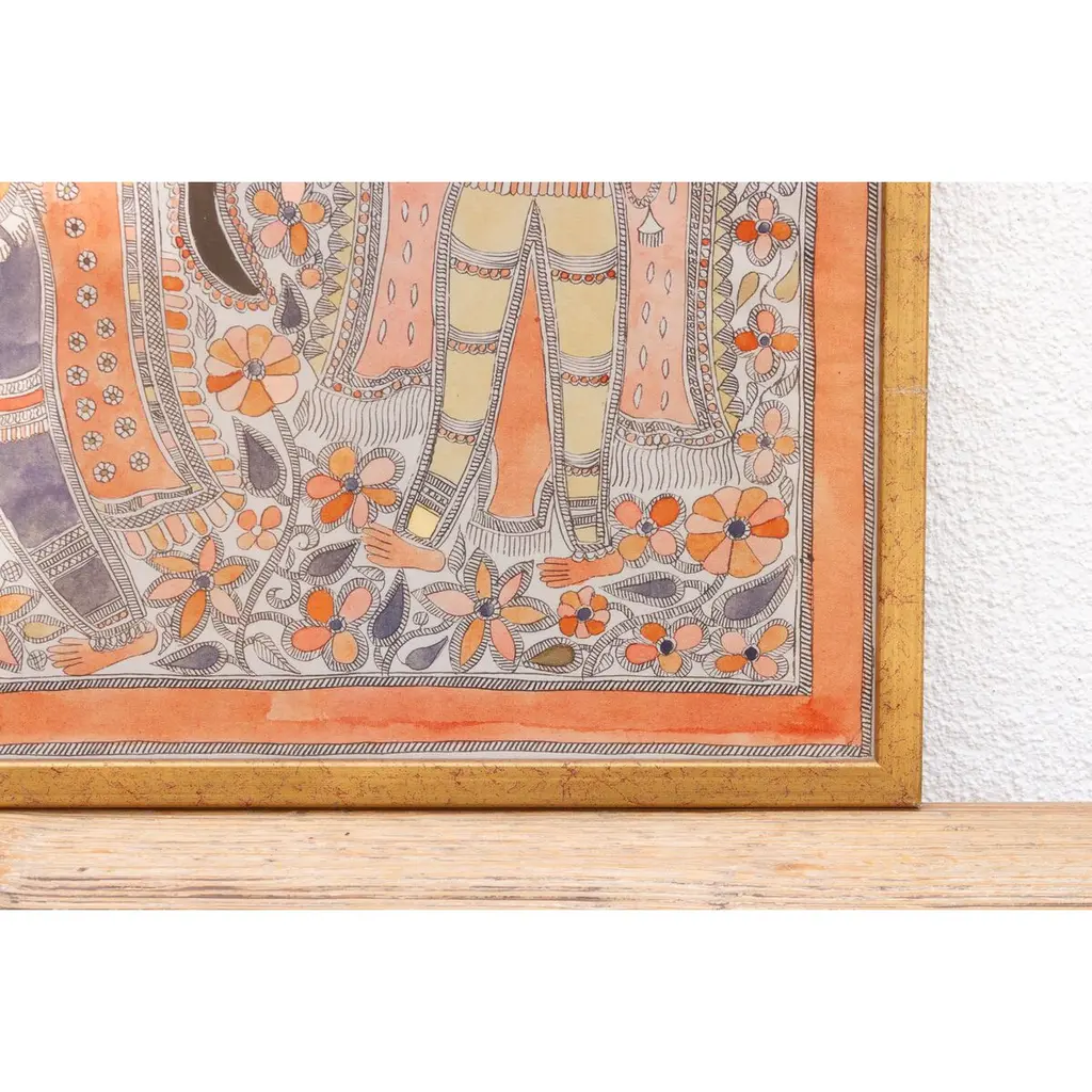 Vintage Framed Indian Madhuban Folk Art