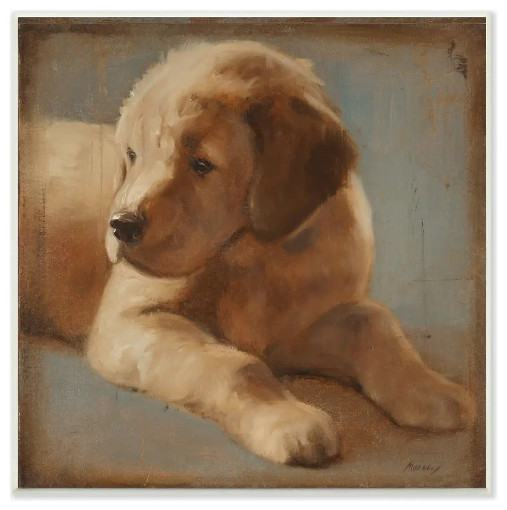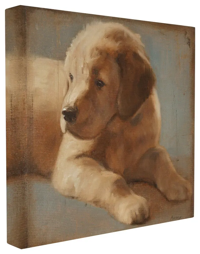 Vintage Golden Puppy Stretched Canvas Wall Art, 24x24