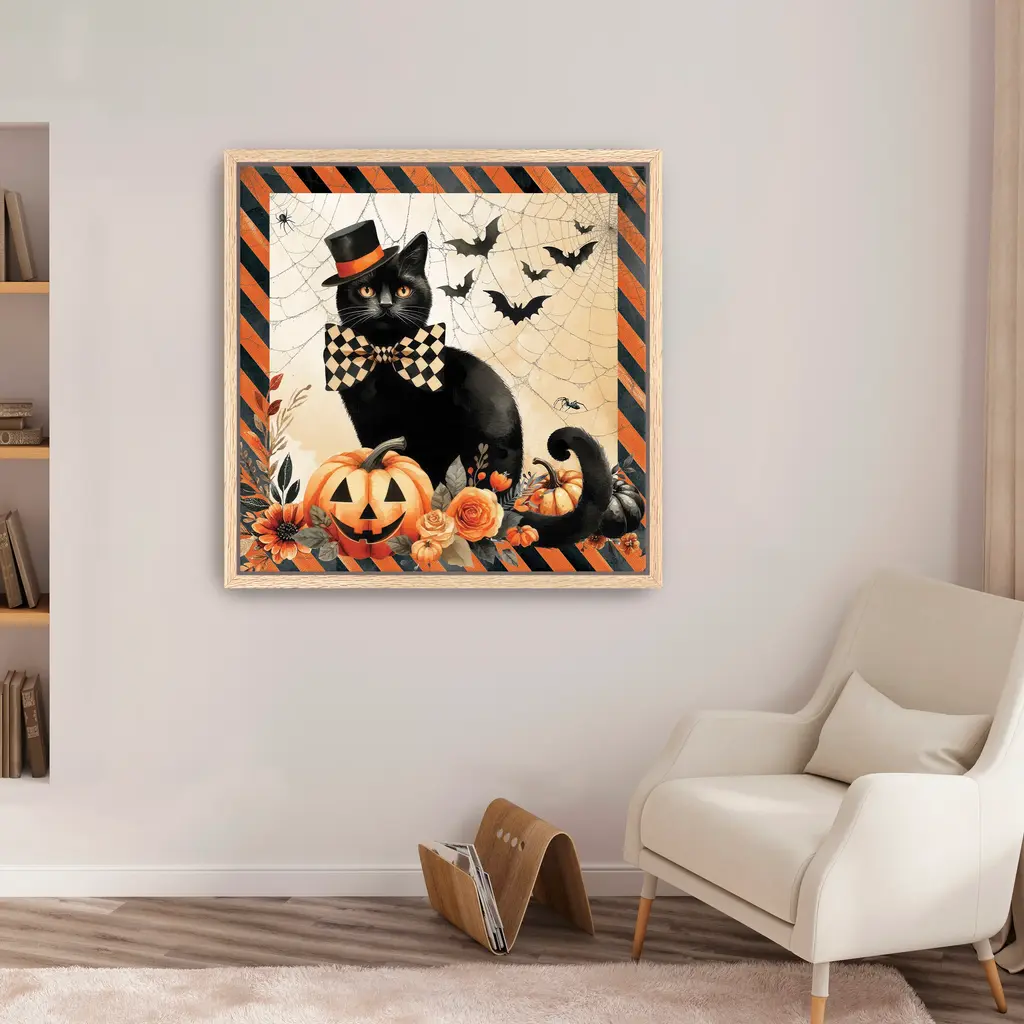 Vintage Halloween Cat Canvas Giclee - Framed / Dark Walnut / 40x40