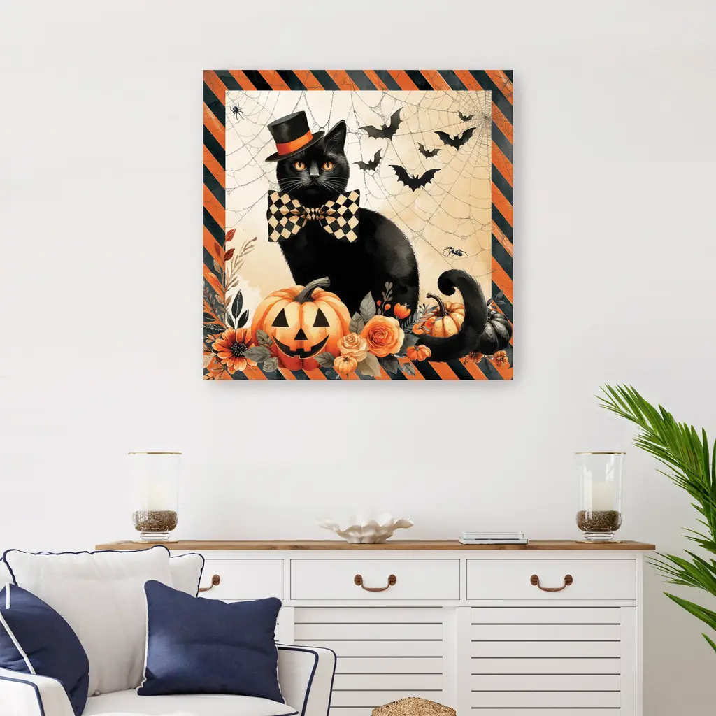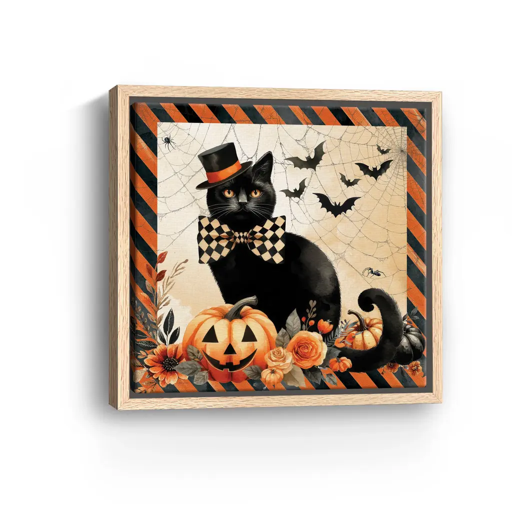 Vintage Halloween Cat Canvas Giclee - Framed / Oak / 30x30