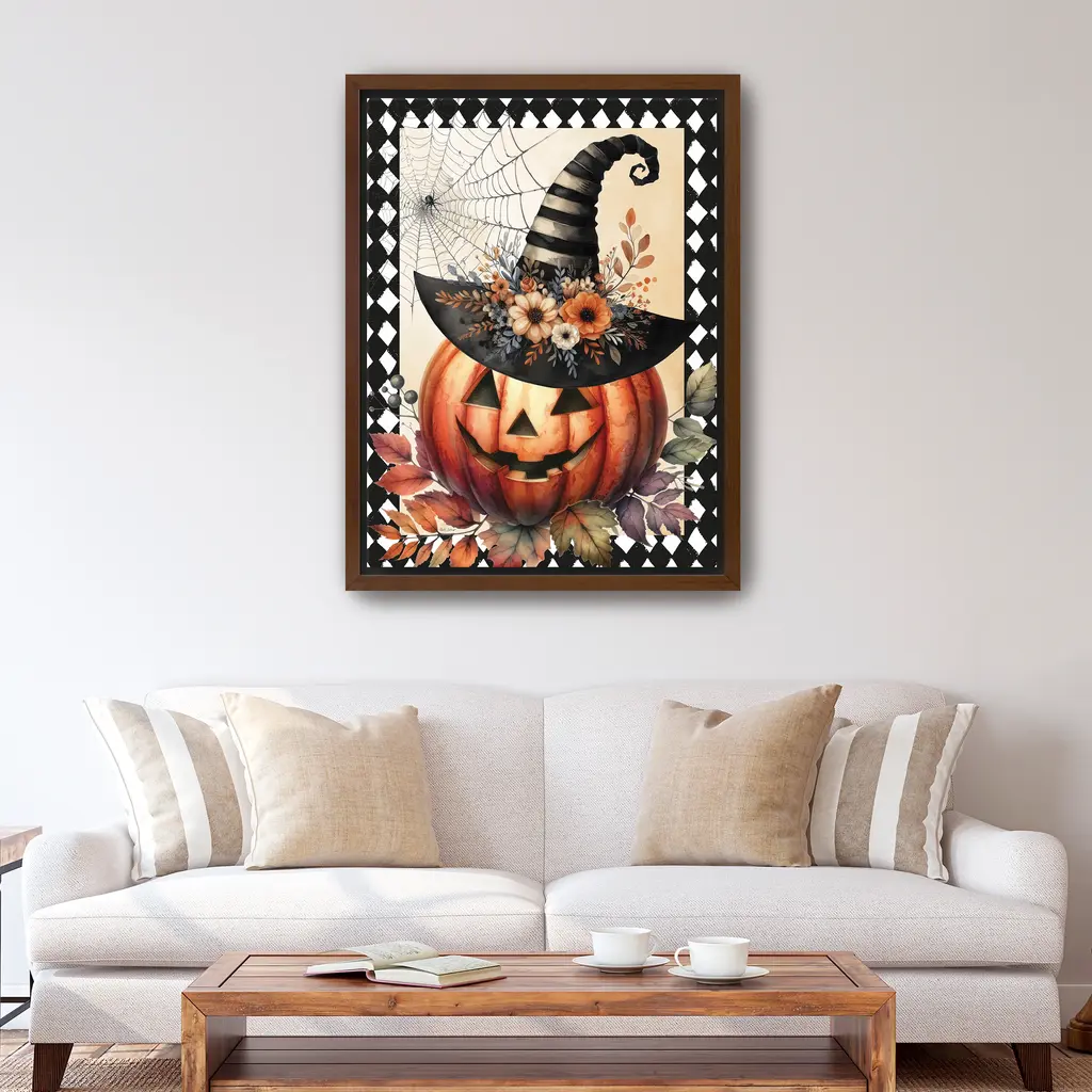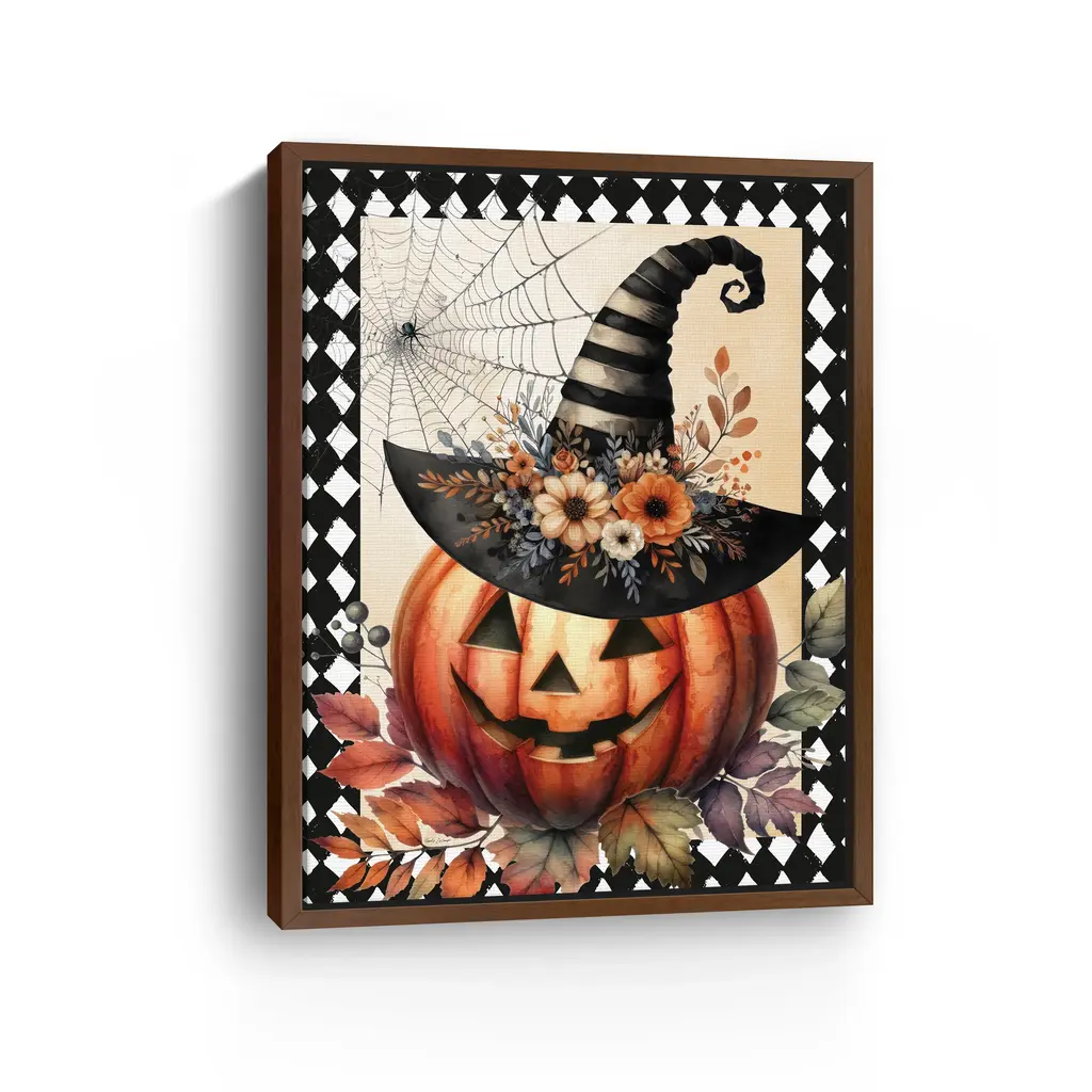 Vintage Halloween Pumpkin Canvas Giclee - Framed / Dark Walnut / 24x32