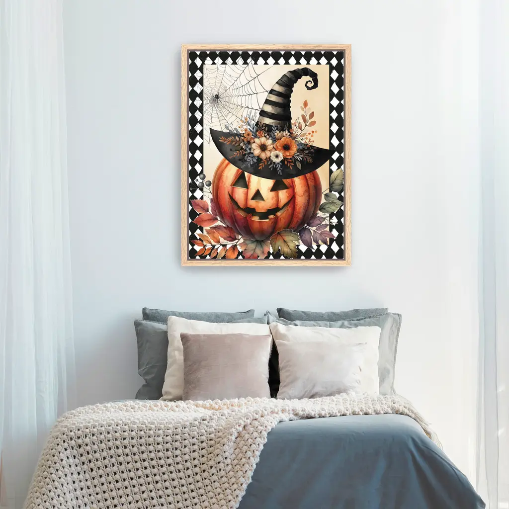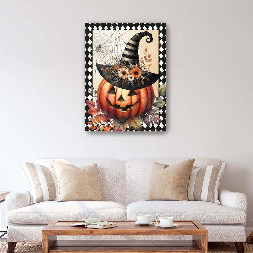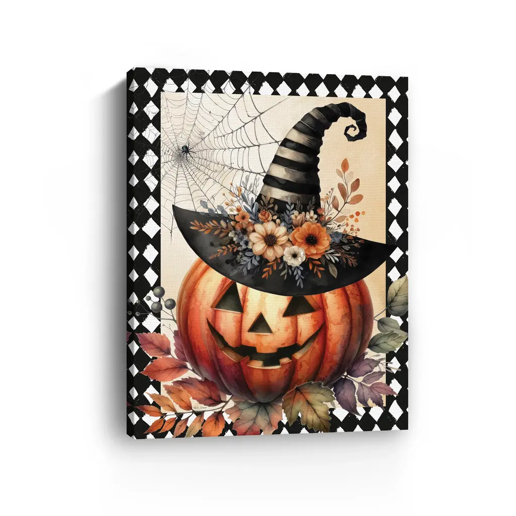 Vintage Halloween Pumpkin Canvas Giclee - Framed / Oak / 24x32