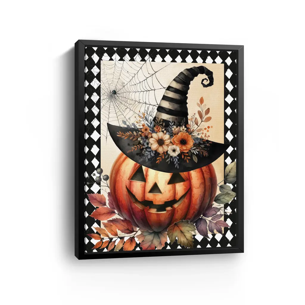 Vintage Halloween Pumpkin Canvas Giclee - Framed / Oak / 30x40