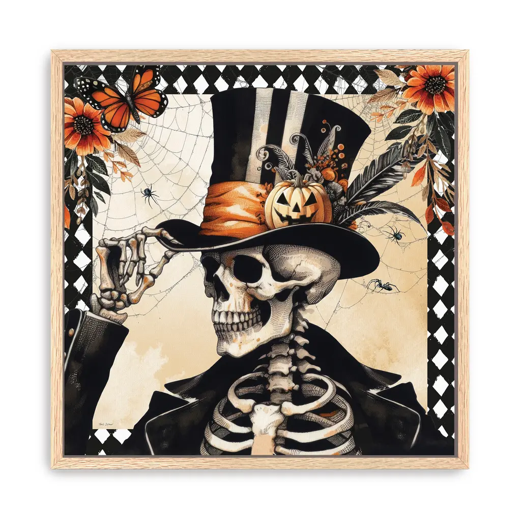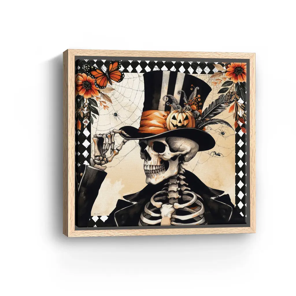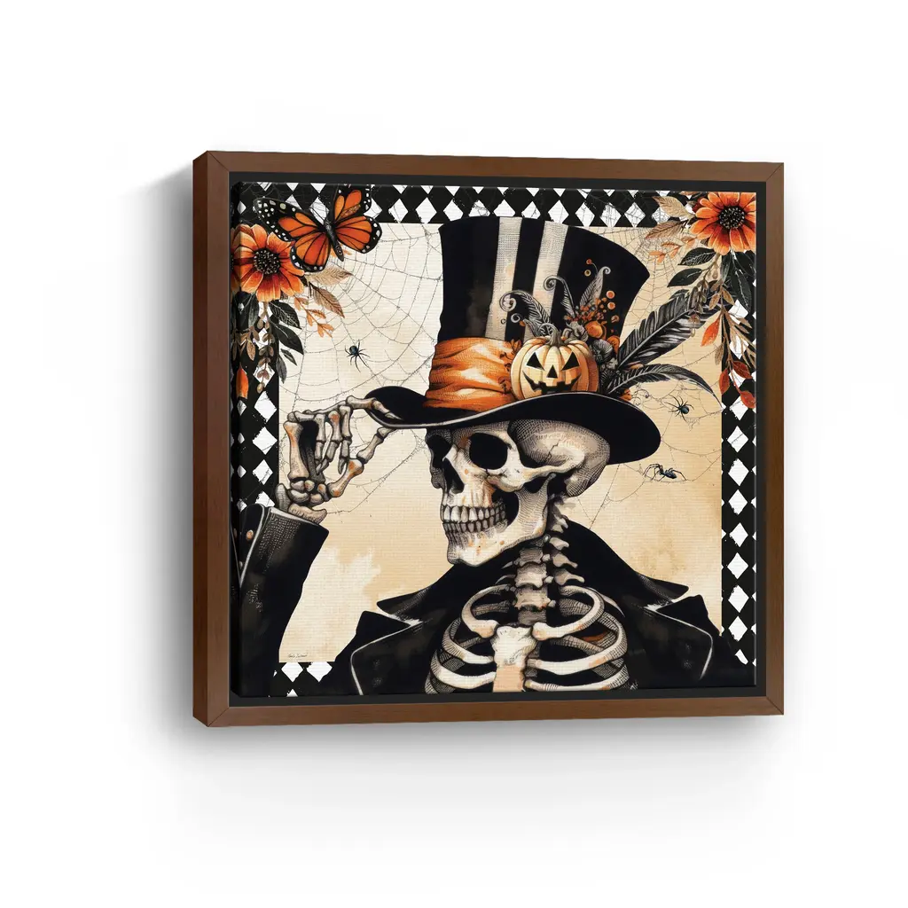 Vintage Halloween Skeleton Canvas Giclee - Framed / Black / 30x30